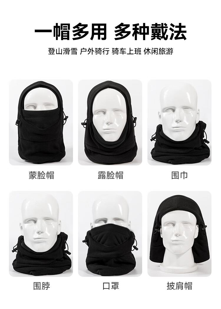 确实方便,多用途,既可以当帽子,也可以当围脖和脸罩,又很保暖,适合冬天高寒地区户外活动用。