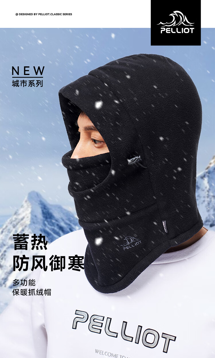 伯希和户外加厚抓绒帽男女秋冬多功能保暖防风骑行运动帽165034014黑色