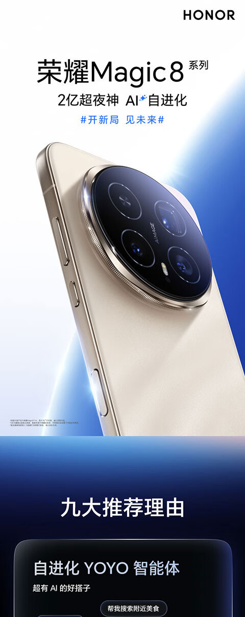 荣耀Magic8 YOYO智能体 超夜神长焦 第五代骁龙8至尊版 新一代青海湖电池 旗舰手机 旭日金 16GB+512GB 官方标配