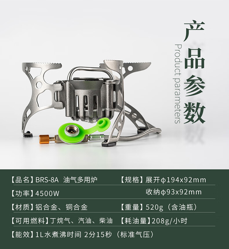 兄弟捷登兄弟BRS-8汽油炉燃油灶户外油气多用炉野外炉具摩旅灶便携式气炉 BRS-8油气两用炉+【备用油瓶】
