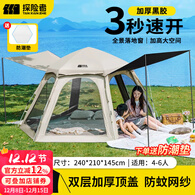 探险者帐篷户外露营便携天幕帐篷速开加厚黑胶防雨防晒全遮光野营装备 黑胶六面帐篷4-6人【防潮垫】