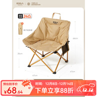 原始人户外折叠月亮椅便携钓鱼凳子野外露营野餐躺椅野营沙滩椅子 卡其-牛津布款加厚棉300G
