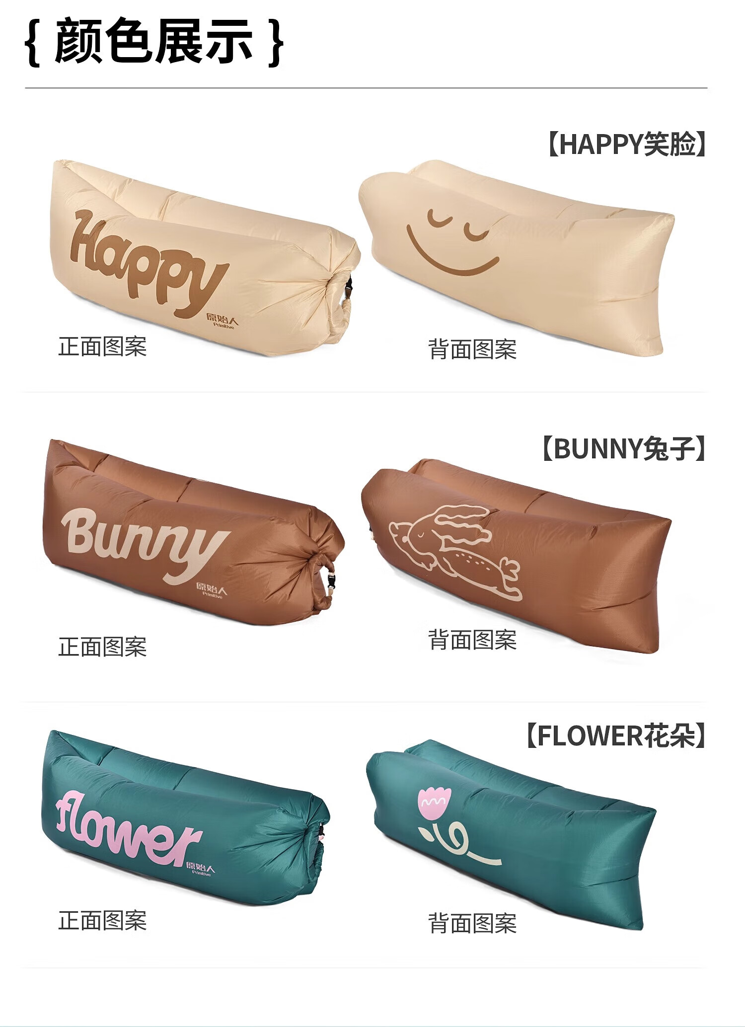 原始人充气沙发户外露营懒人空气单人便携式野营音乐节气垫床坐 加长Happy笑脸【配收纳袋】