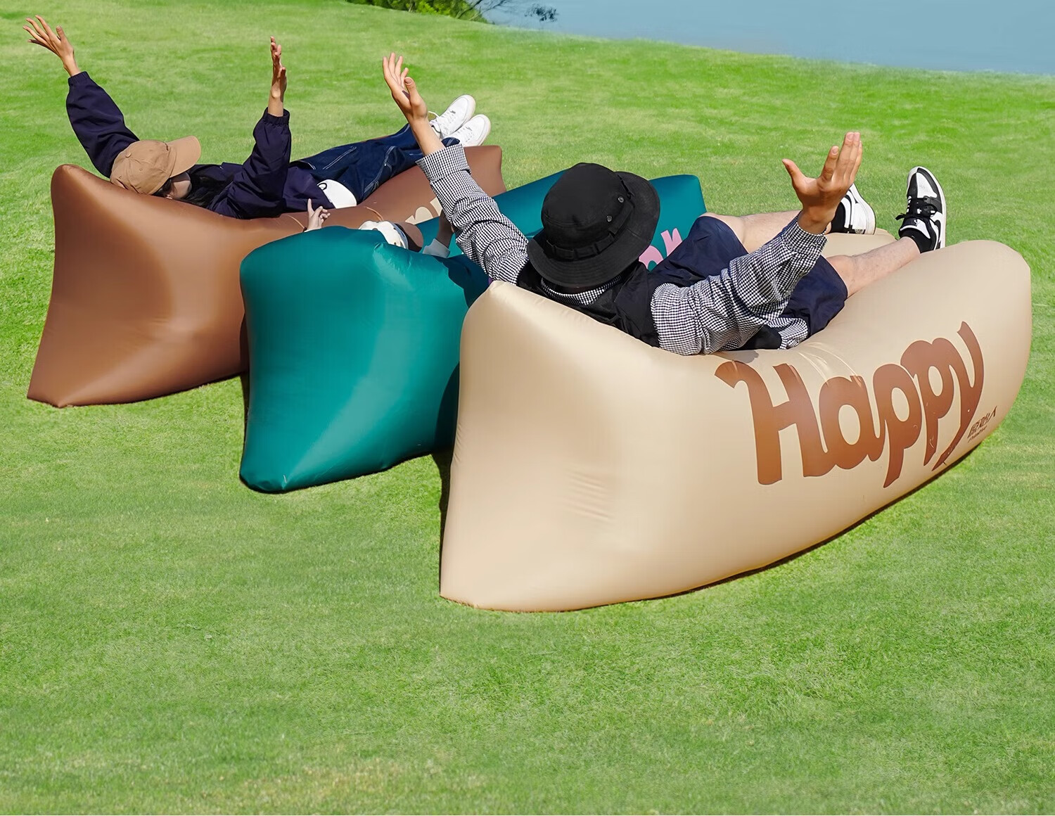 原始人充气沙发户外露营懒人空气单人便携式野营音乐节气垫床坐躺 Happy笑脸【承重500斤】配收纳袋