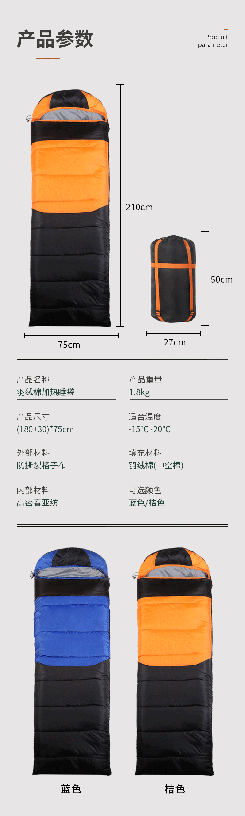这款加热睡袋保暖效果不错,USB加热很实用,蓝色款式也好看 出去露营带着也方便收纳 很喜欢