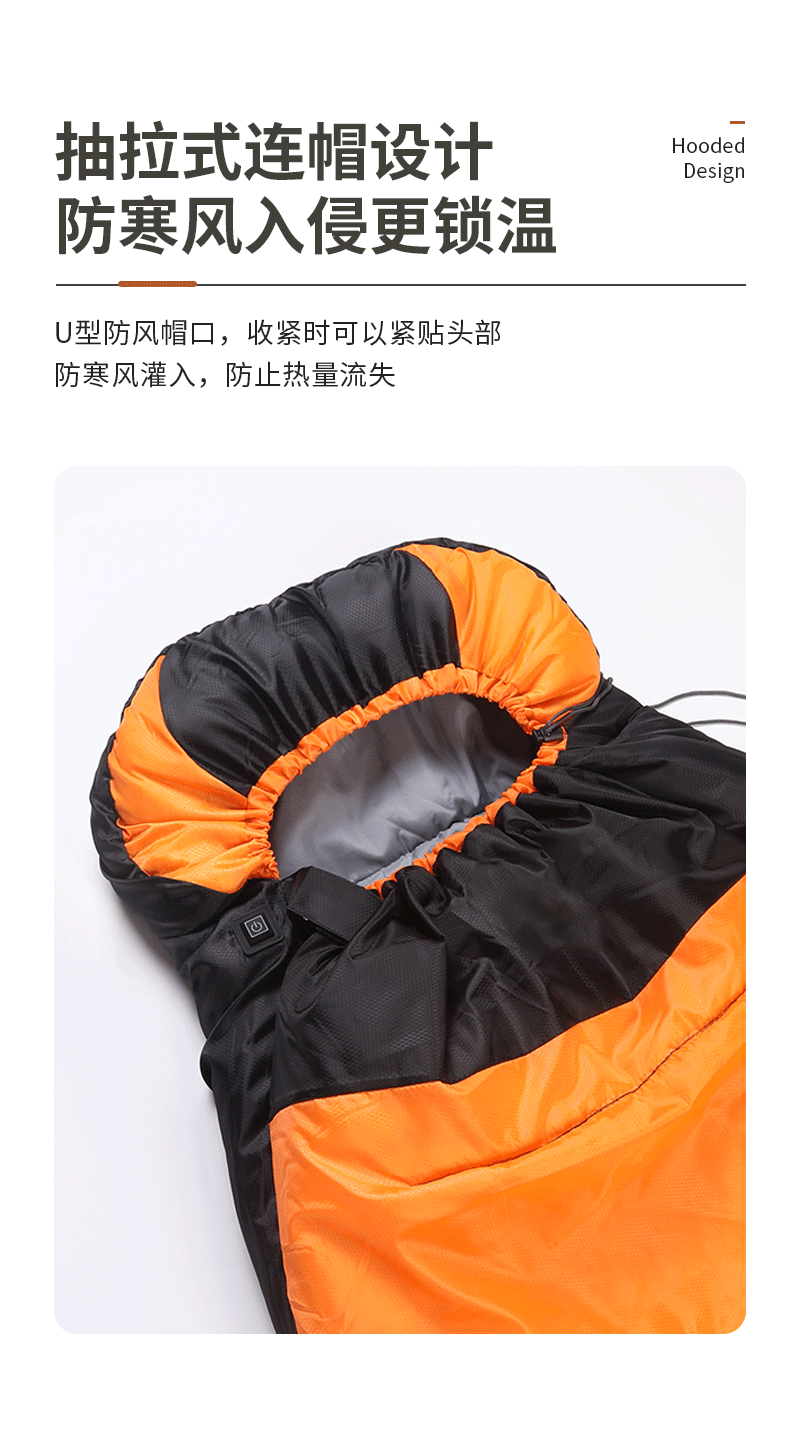 加热睡袋成人户外露营电热USB保暖睡袋防寒隔脏睡袋可拼接双人 加热睡袋桔色2.3kg