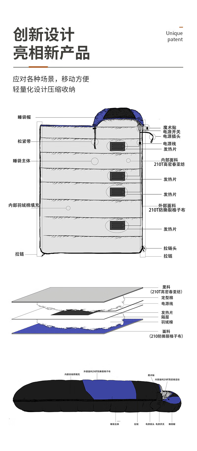 露营时带上它真的太方便了,晚上睡觉暖暖的,完全不怕冷。材质很舒服,收纳也简单,不占地方。设计很贴心,加热功能让户外过夜变得轻松,续航也不错,整晚都能用。这次体验超出预期!