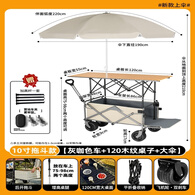 摆摊小推车夜市摊位拉车遮阳伞户外露营车升降桌折叠营地野餐烤肠 10寸飞机轮【灰咖车+120木纹桌子+大伞】拖斗款