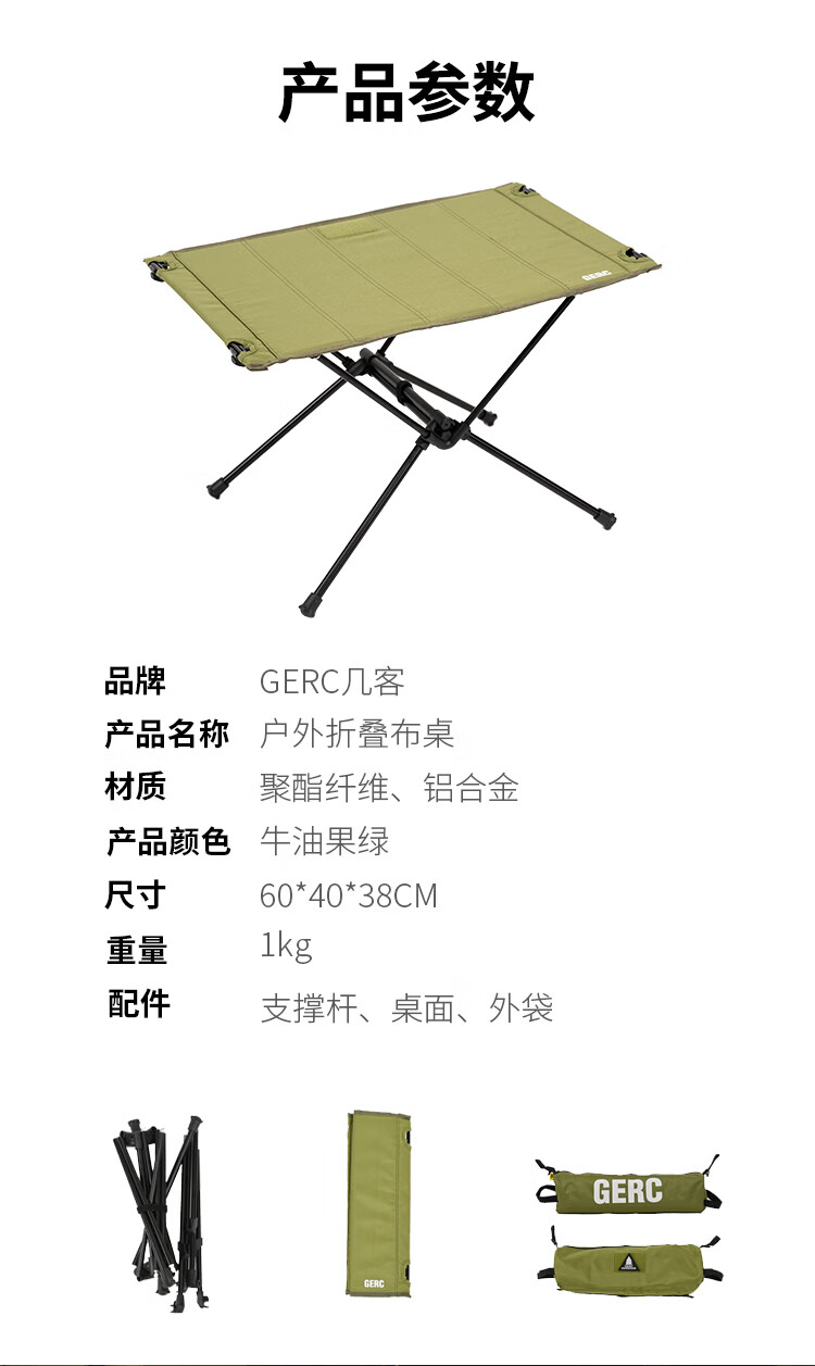 GERC几客战术布桌户外骑行露营装备便携式折叠小桌子超轻量化餐桌 一桌一椅组合套装