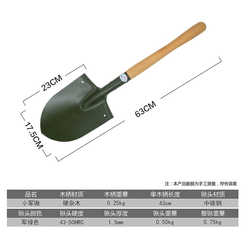 军云 小铲 铁锹户外家用铲子 园艺工具车载小铲 防洪小锹 大小镐 小铲63cm