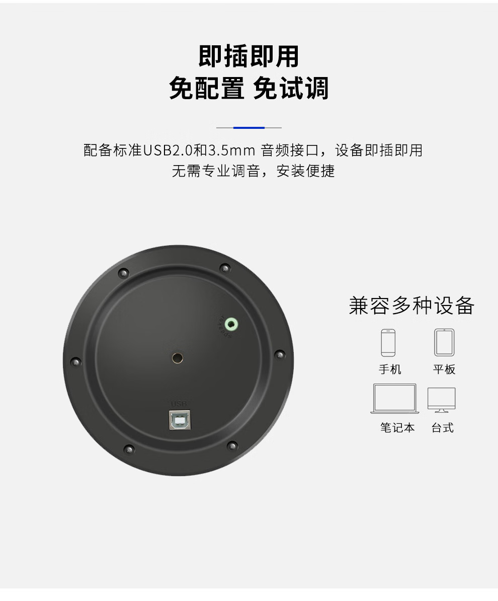 华视动狐华视AM70自适应无感阵列拾音麦克风阵列拾音全向麦克风/录播收音麦/录播室会议室吊麦拾音器拾音麦 [阵列拾音收音麦克风】