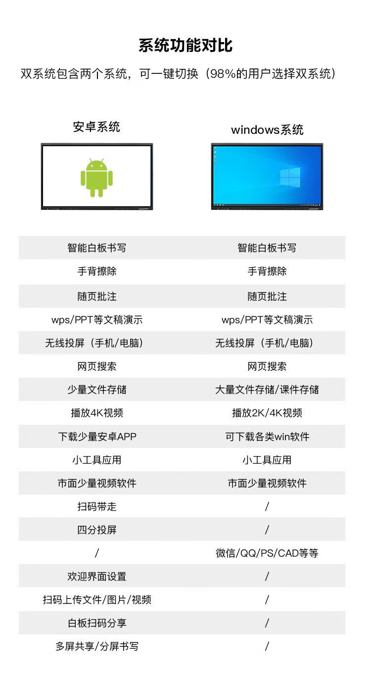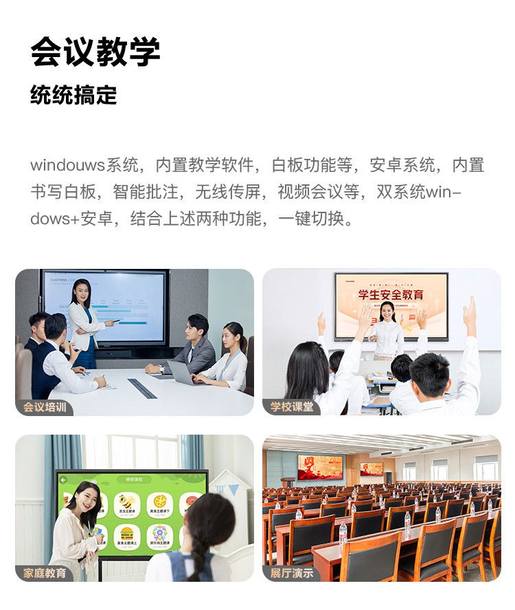 沃普西【全网比价】电子白板多媒体教学培训会议平板一体机智能办公高清触控屏投屏视频电视智慧屏 100款触控屏+推车+触摸笔(10人内) 性能强劲】双系统(win10/i5+安卓14)