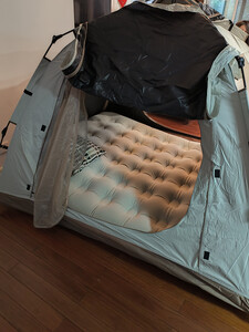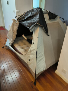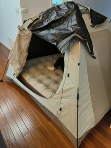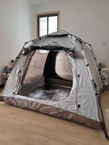 帐篷挺不错的,比我想象中的大,比较宽敞,我比较喜欢四面通风纱窗,不至于很热,挺不错的,趁着六一八活动购买比较划算,有点味,晾一下就好了,总体是可以的
