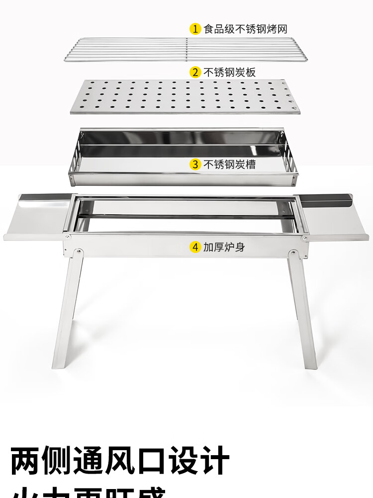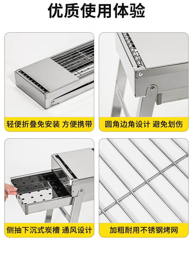 物流很快,收到货就迫不及待试用了。不锈钢材质很厚实,折叠设计超方便,收纳不占地方。烧烤时受热均匀,清洗也容易。野餐带上它,朋友们都夸好用,性价比很高。