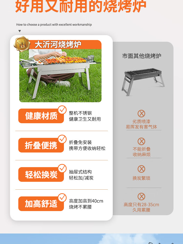 第一次买这种户外烤肉神器,真的超方便!材质厚实耐用,组装简单,烤出来的肉特别香。朋友聚会必备,清洗也容易!