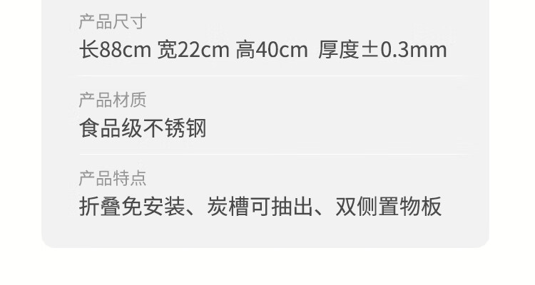 产品小巧便携,户外野餐带着很方便。烤架受热均匀,烤肉速度挺快,清洗也不费劲。周末和朋友出去用了几次,大家都说好用。