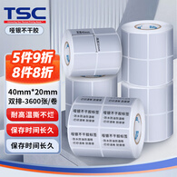 TSC 进口艾利哑银标签纸 亚银PET不干胶标签打印纸 固定资产管理标签贴 防水防油防刮不干胶条码标签 40mm*20mm双排-3600张/卷