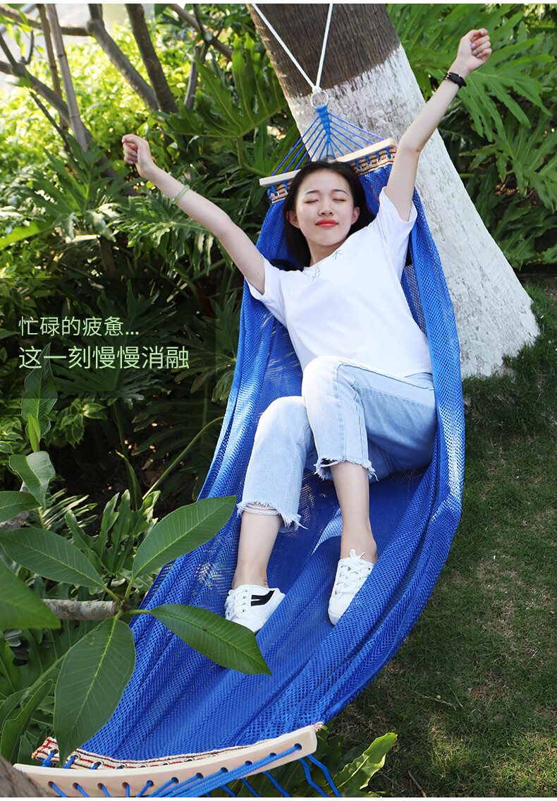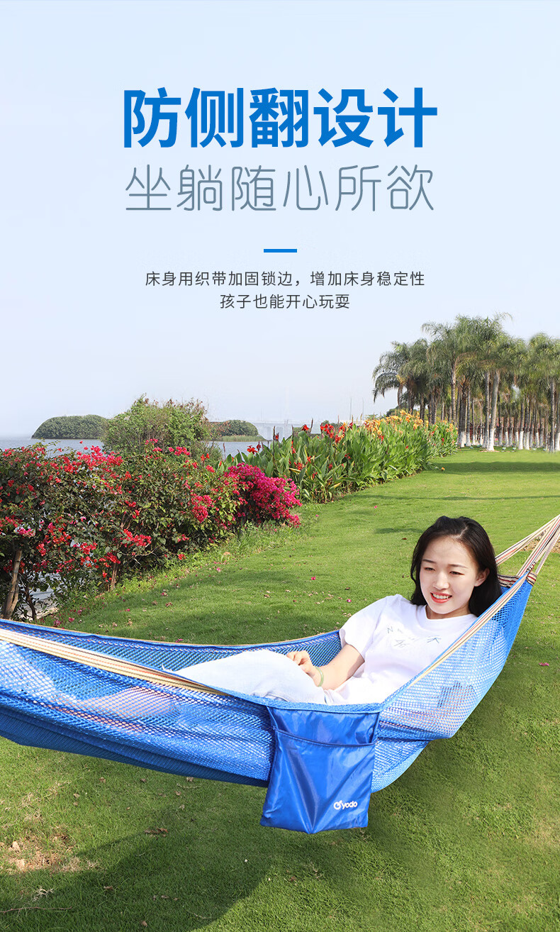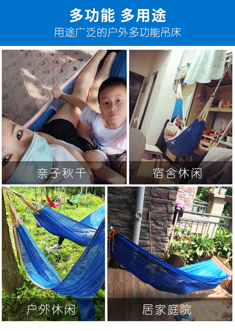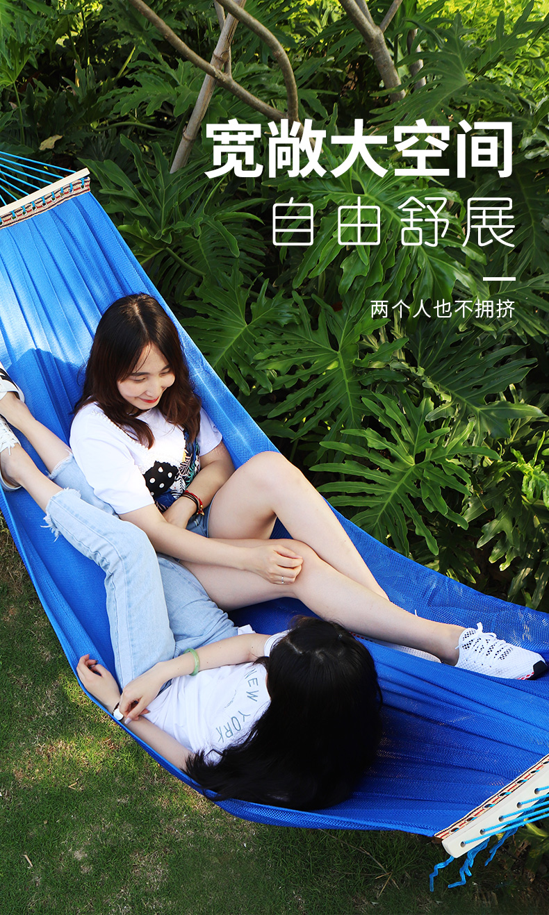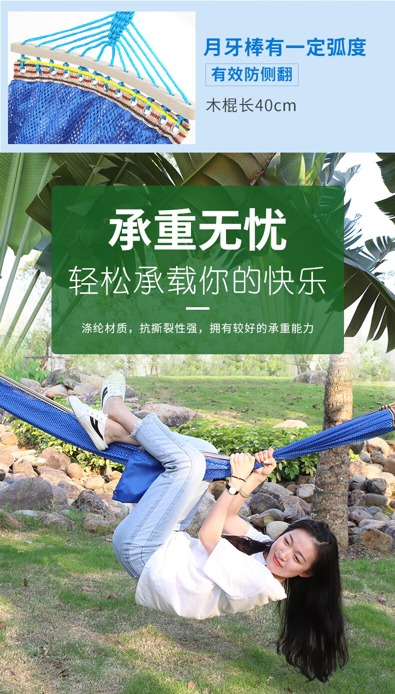 思凯乐户外吊床防侧翻双人带杆公园野营秋千专业户外露营便携吊床 蓝色【加厚精织帆布】承重500斤 JM