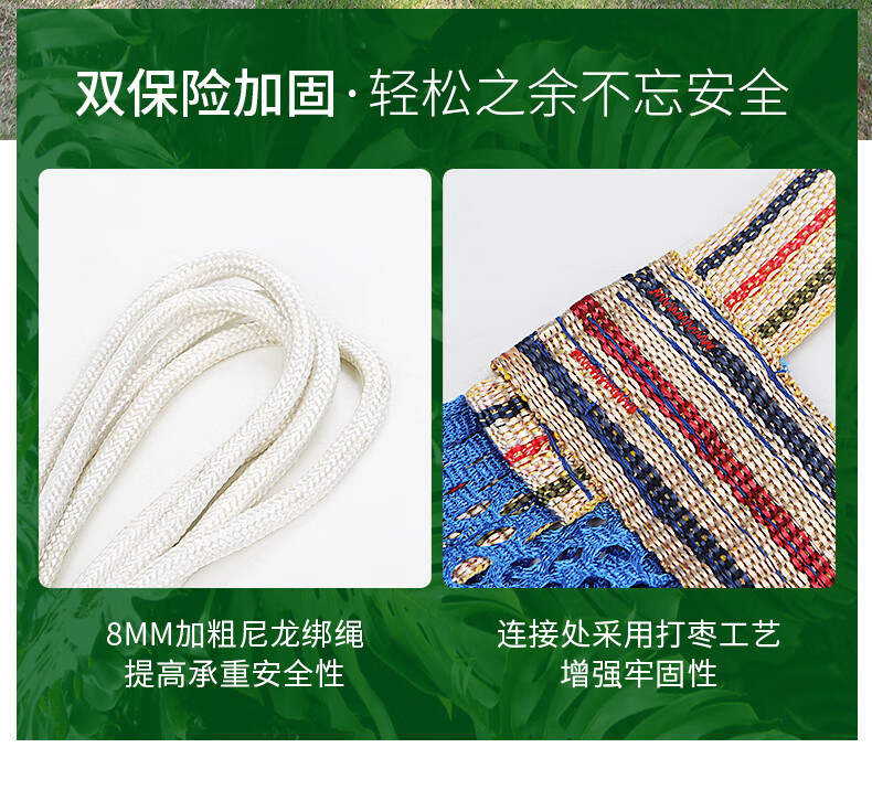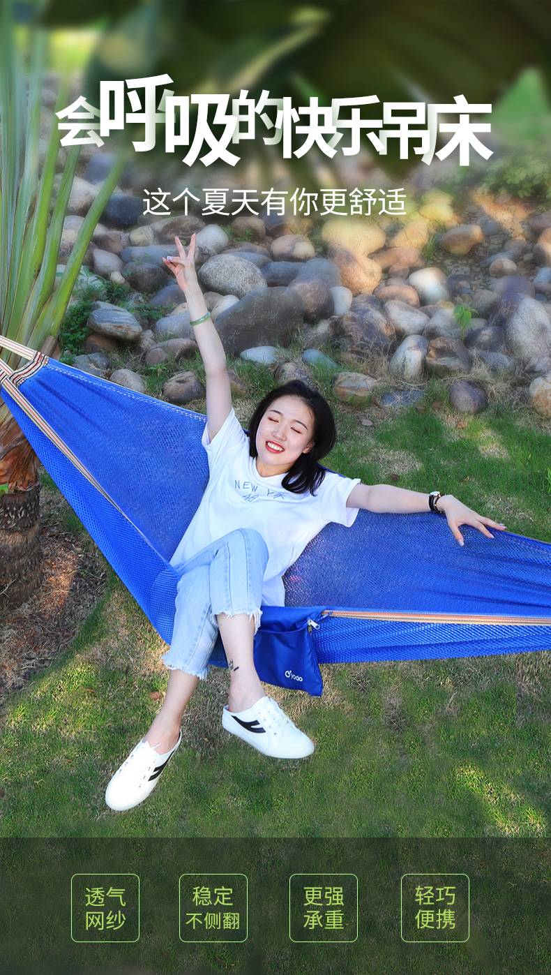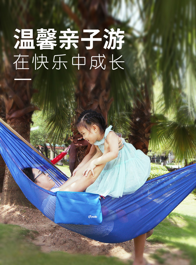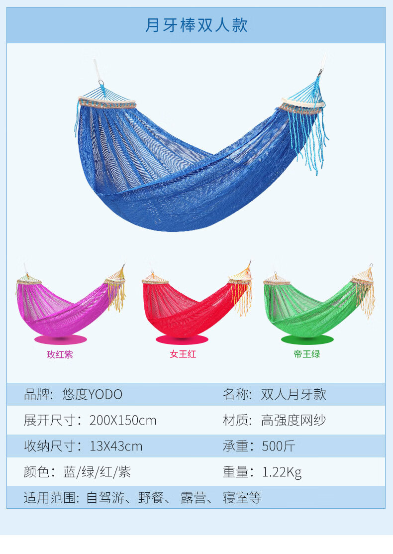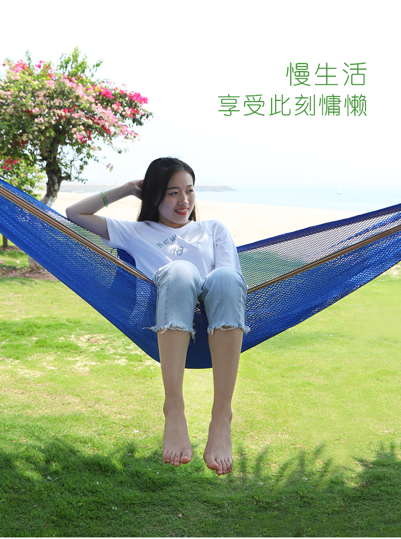思凯乐户外吊床防侧翻双人带杆公园野营秋千专业户外露营便携吊床 蓝色【加厚精织帆布】承重500斤 JM
