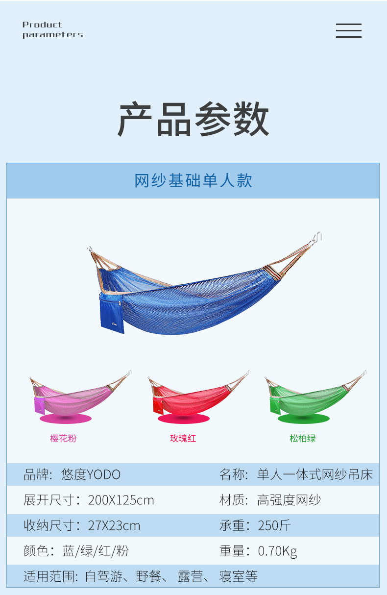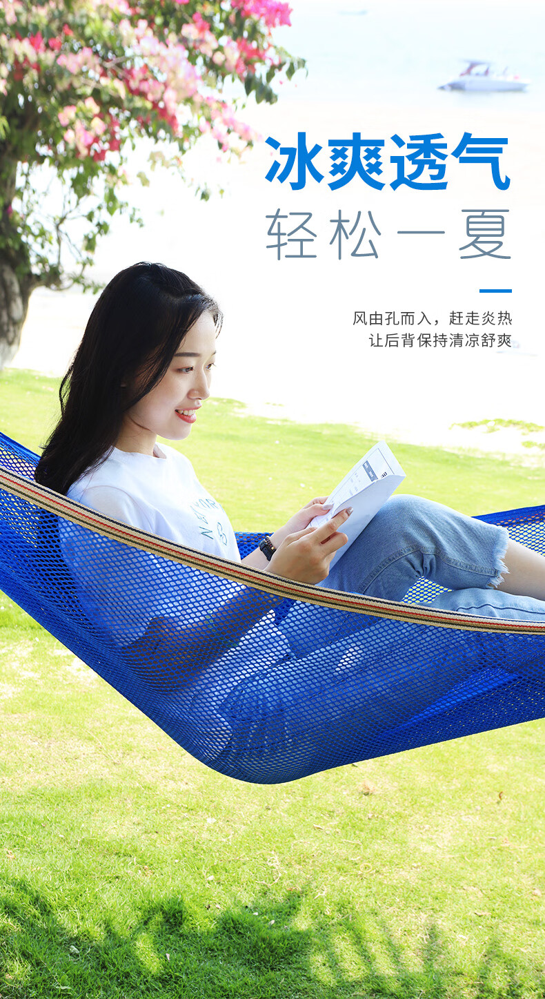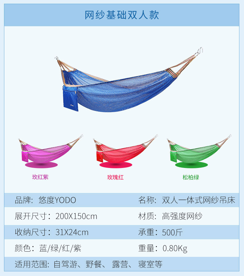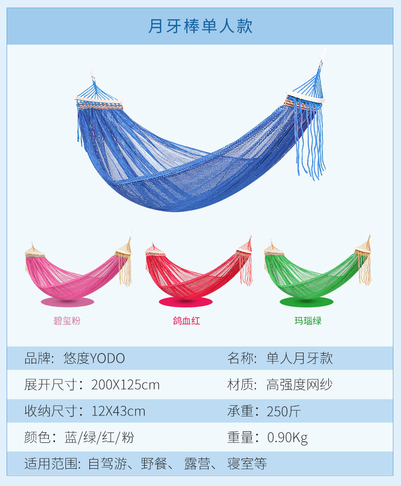 悠度户外冰丝网吊床单人双人宿舍室内寝室吊床透气升级款 玫瑰红单人款+3米加粗尼龙绳2根