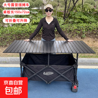 露营摆摊推车一体车野餐车折叠桌地摊移动夜市可升降移动餐车棚 【6支撑杆】车(黑)+150*72升降桌