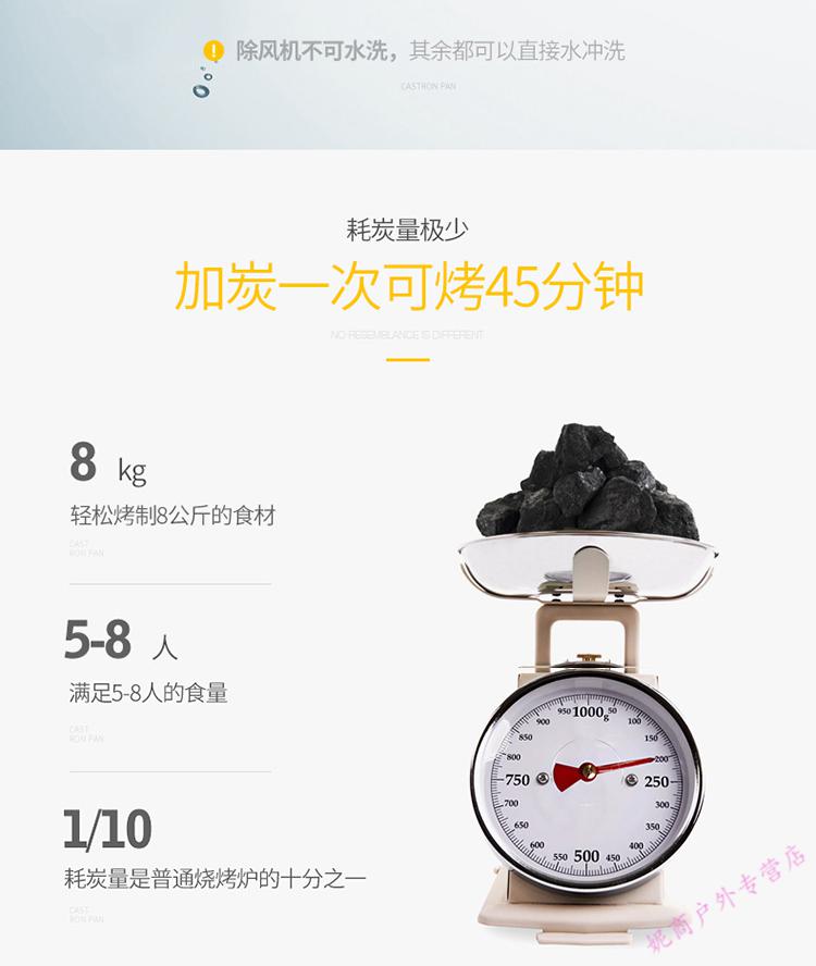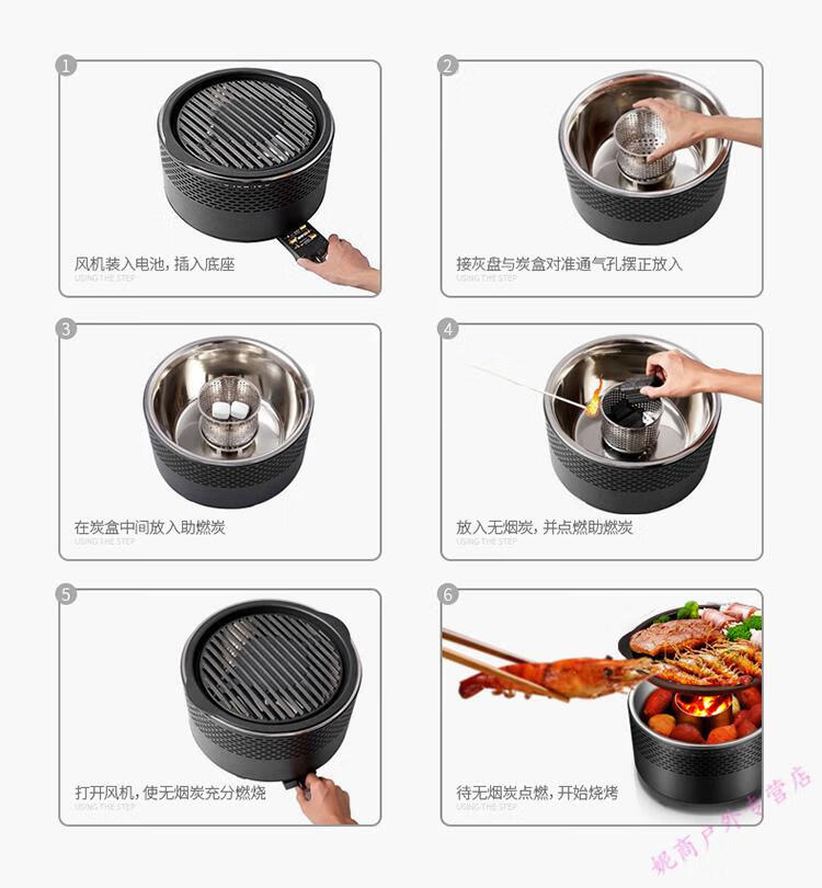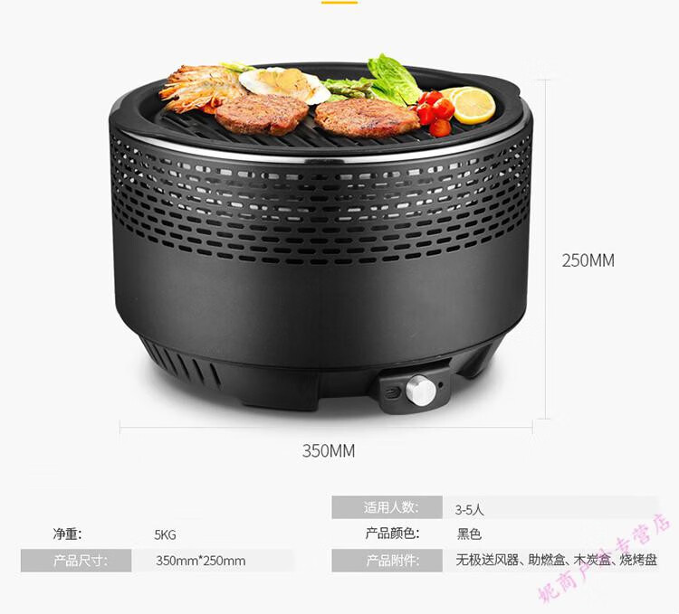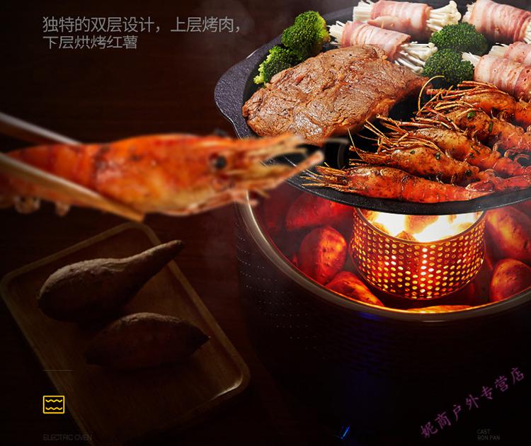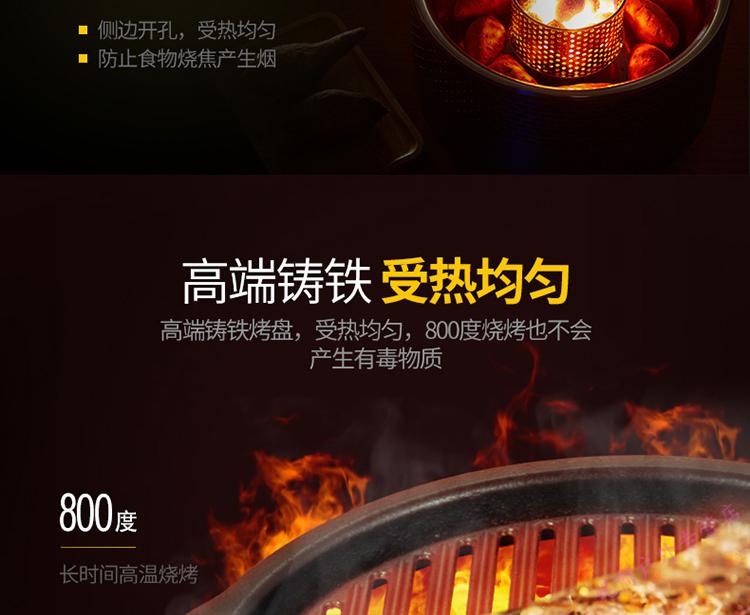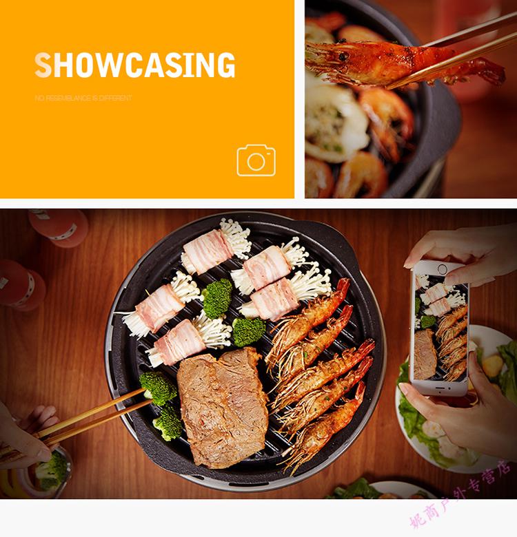 山力士家用烧烤炉 便携式 户外火锅韩式 烧烤神器室内不锈钢碳炉子 黑色(铸铁盘)
