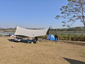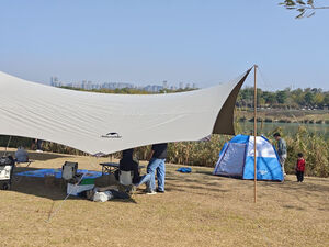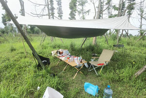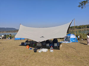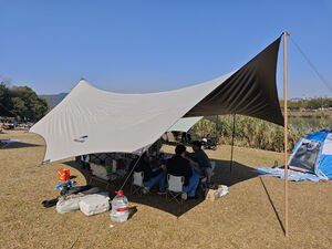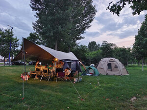 帐篷,桌子椅子,都齐全了,就差一个天幕了,看了好久,趁618入手这个大天幕,面积足够大,这下齐全了,这个天幕可以坐16人,下面还可以放个帐篷,完全没有问题,非常棒!