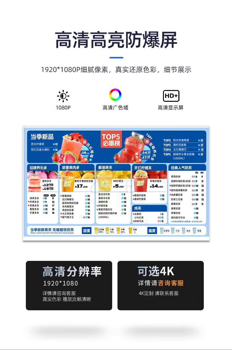 夏新(Amoi)电子菜单显示屏高清高亮桌面广告机奶茶店餐饮店门店数字菜单屏营销屏广告显示屏 21.5英寸菜单显示屏【标配1G+8G】