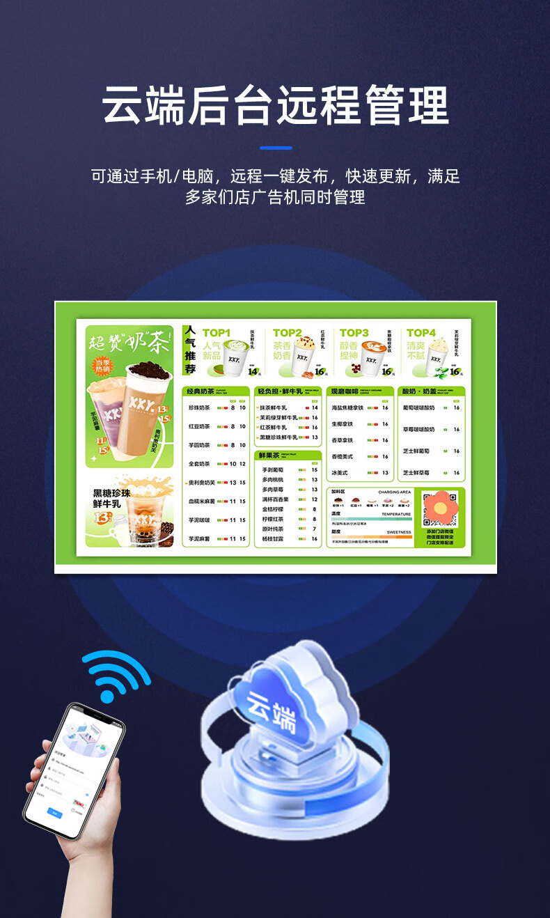 19--100英寸广告机显示屏吊挂奶茶店宣传屏电梯广告机壁挂立式横竖屏显示器ERP生产车间电子看板 75英寸网络广告机(旗舰版)