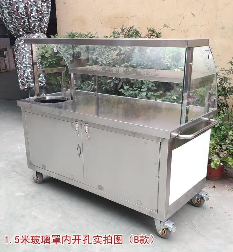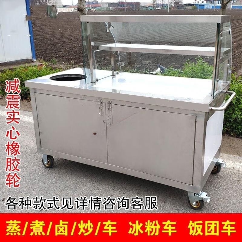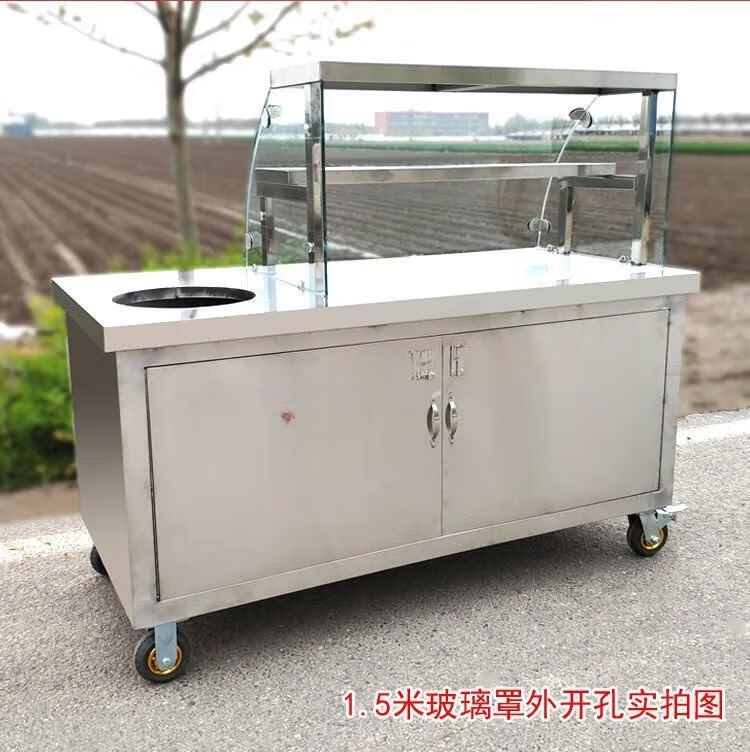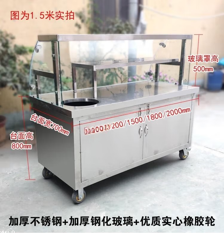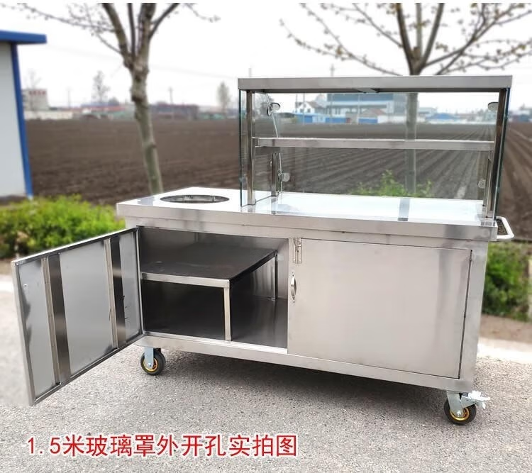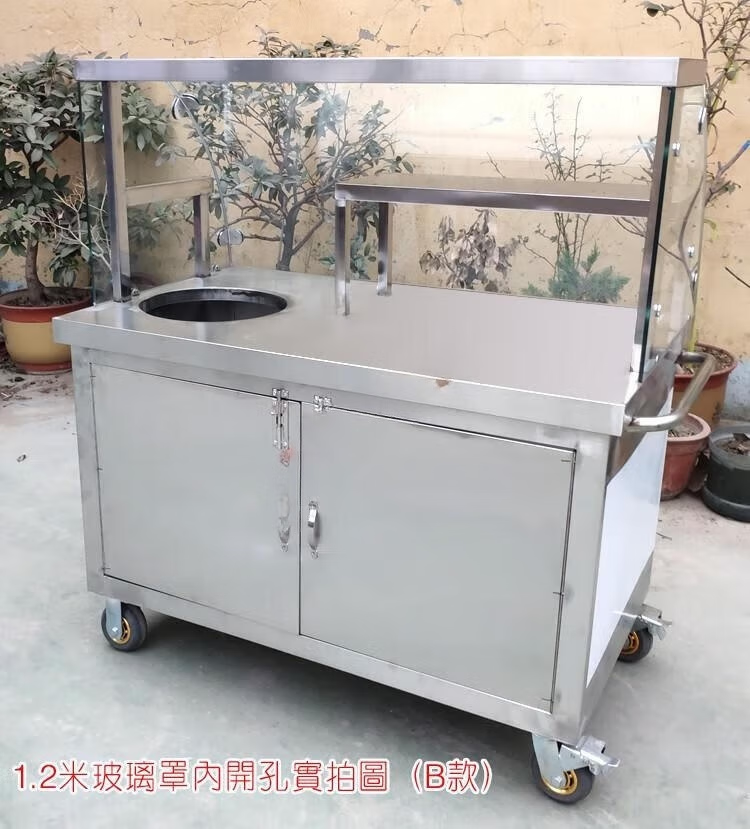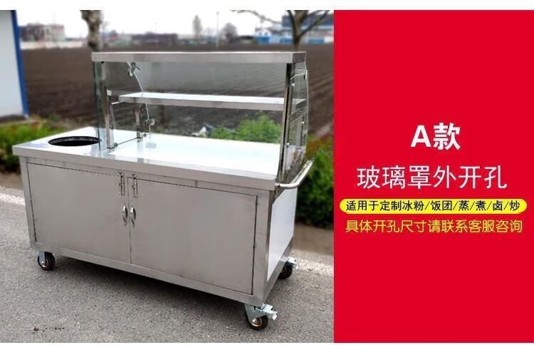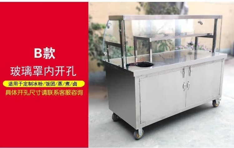 Grimar Jonsson定制 小吃车夜市摆摊移动推车煤气灶外卖早餐车煮面炒粉台湾饭团 1.2米玻璃罩外开孔A款