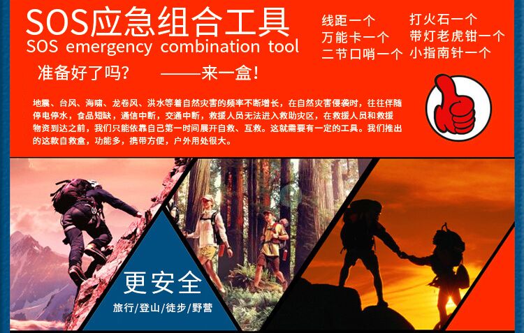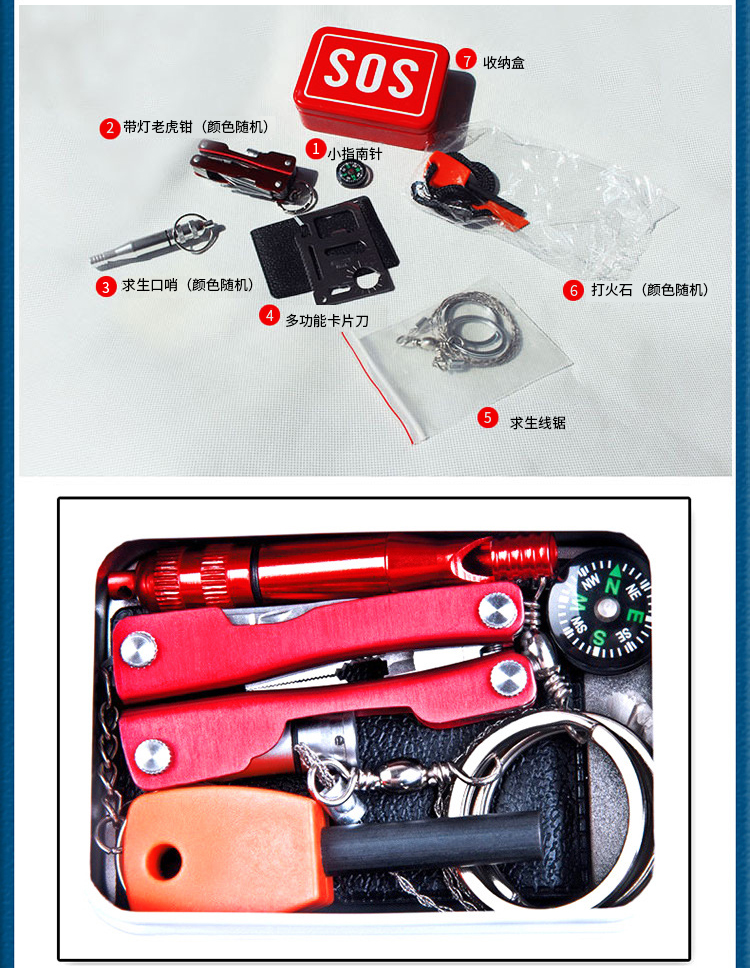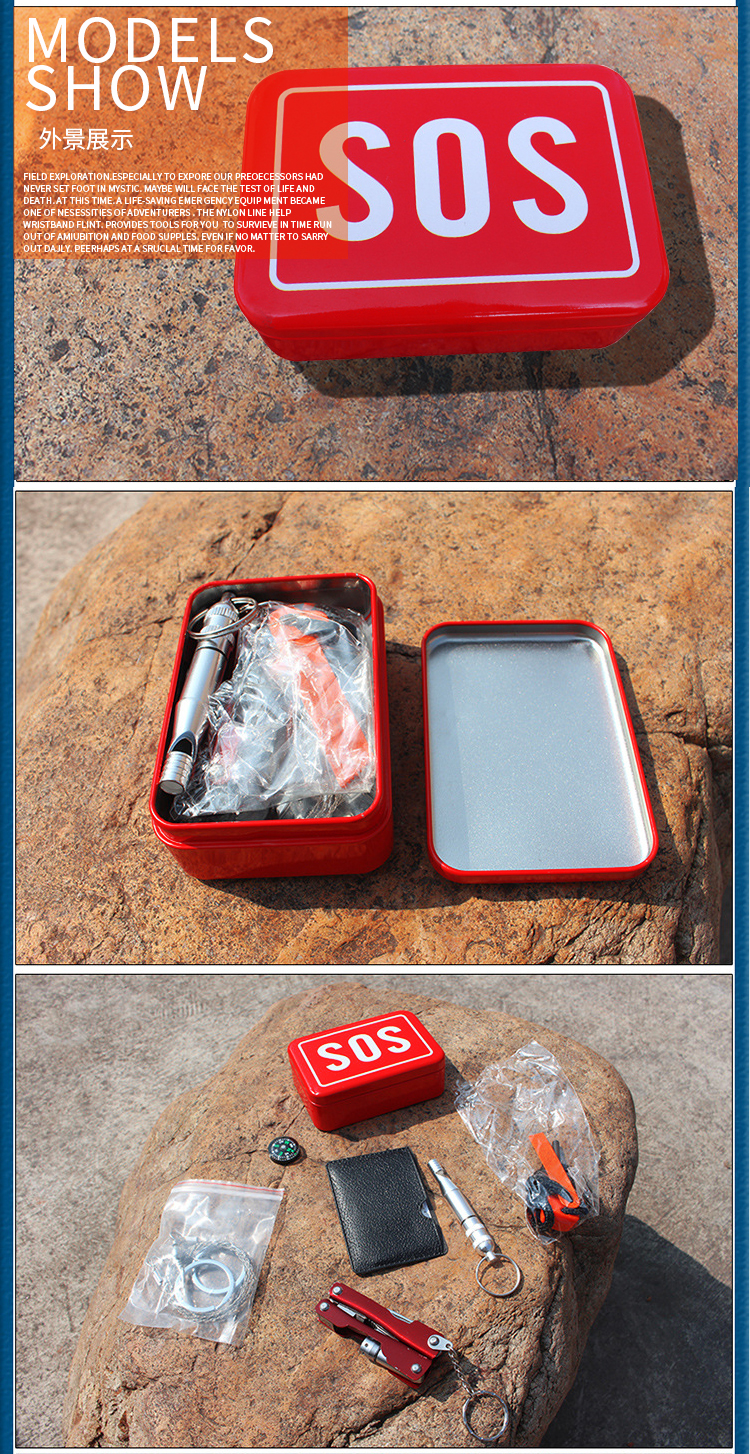 初构想SOS应急工具盒户外多功能自驾游应急求生工具套装装备 红色