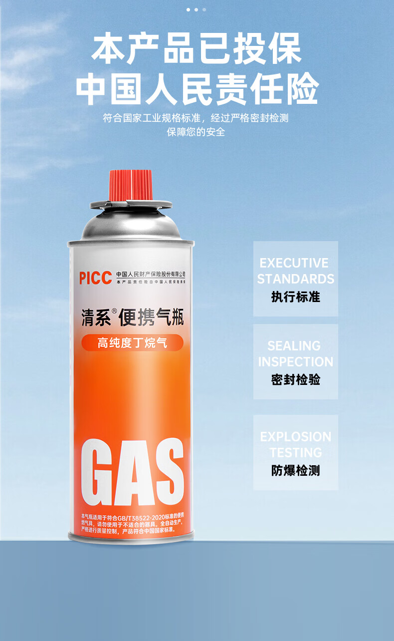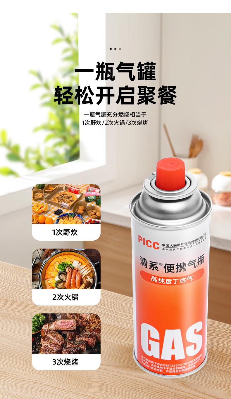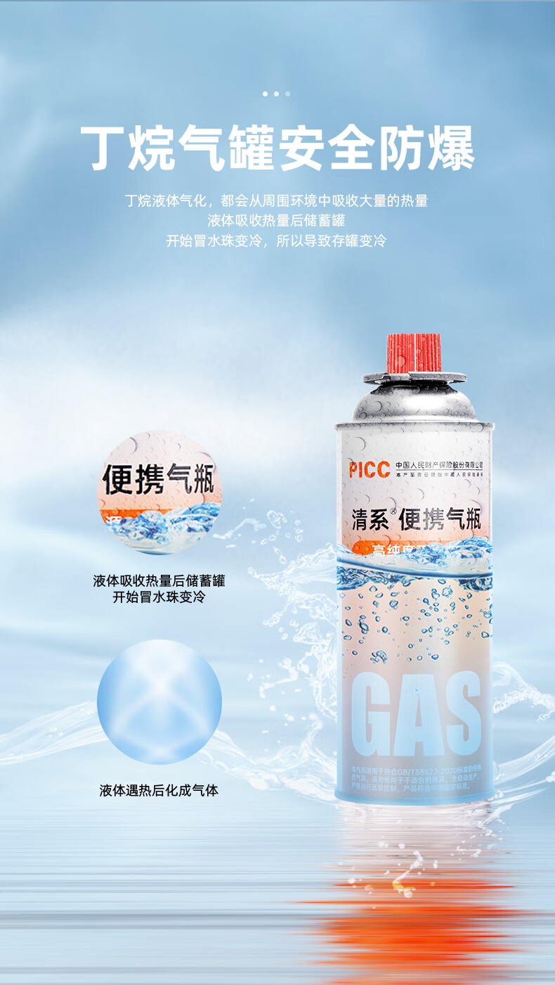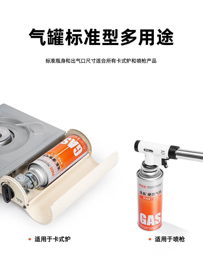 清系户外便携卡式炉防爆气罐220g*8 优点 - 性价比高:价格实惠,平均下来2块多一瓶,对于户外用气来说,是比较经济的选择。 - 使用方便:与大多数卡式炉通用,安装简单,一拧就可以搞定。即开即用,无需复杂的安装和调试过程。 - 火力强劲:丁烷燃烧充分,能提供稳定且足够的热量,产生蓝色火焰,升温快速,可满足户外烧水、煮饭、炒菜、烤肉等多种烹饪需求。一罐燃料约可燃烧120 - 180分钟,能满足一次野炊、两次火锅或三次烧烤的使用。 - 安全性高:具有防爆设计,有过压保护装置,当气罐内压力过高时会自动泄压,降低爆炸风险。罐身采用坚韧金属外壳,高密封不漏气,能承受一定的压力和碰撞。