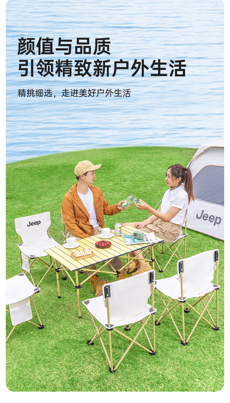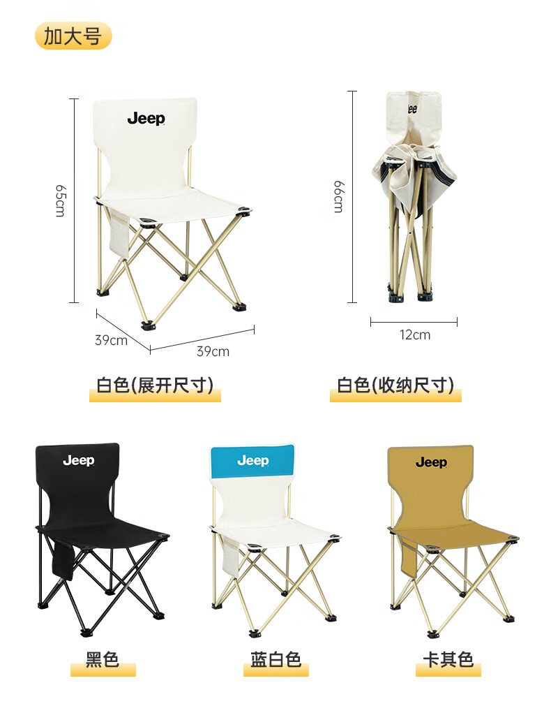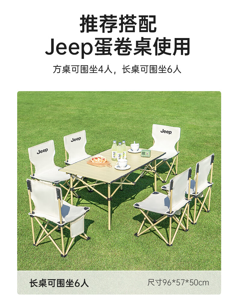 分别买了jeep的一整套装备,款式挺好看的,坐着也很舒服的,椅子舒适高支撑好,总体也挺不错的!尺寸大小也可以,承重性强,很实用的一款!