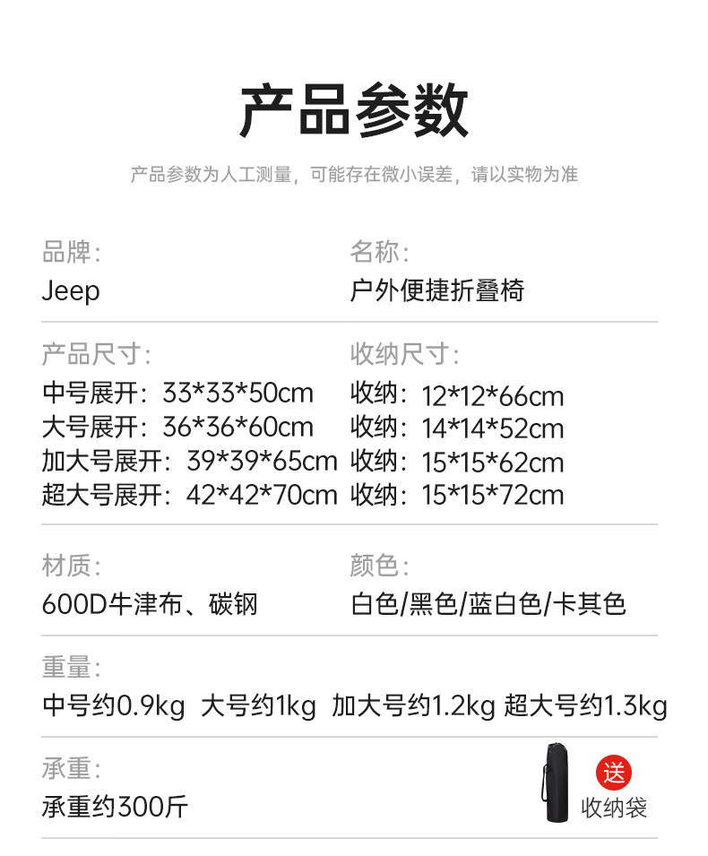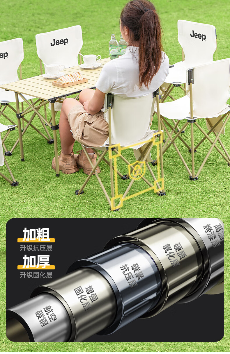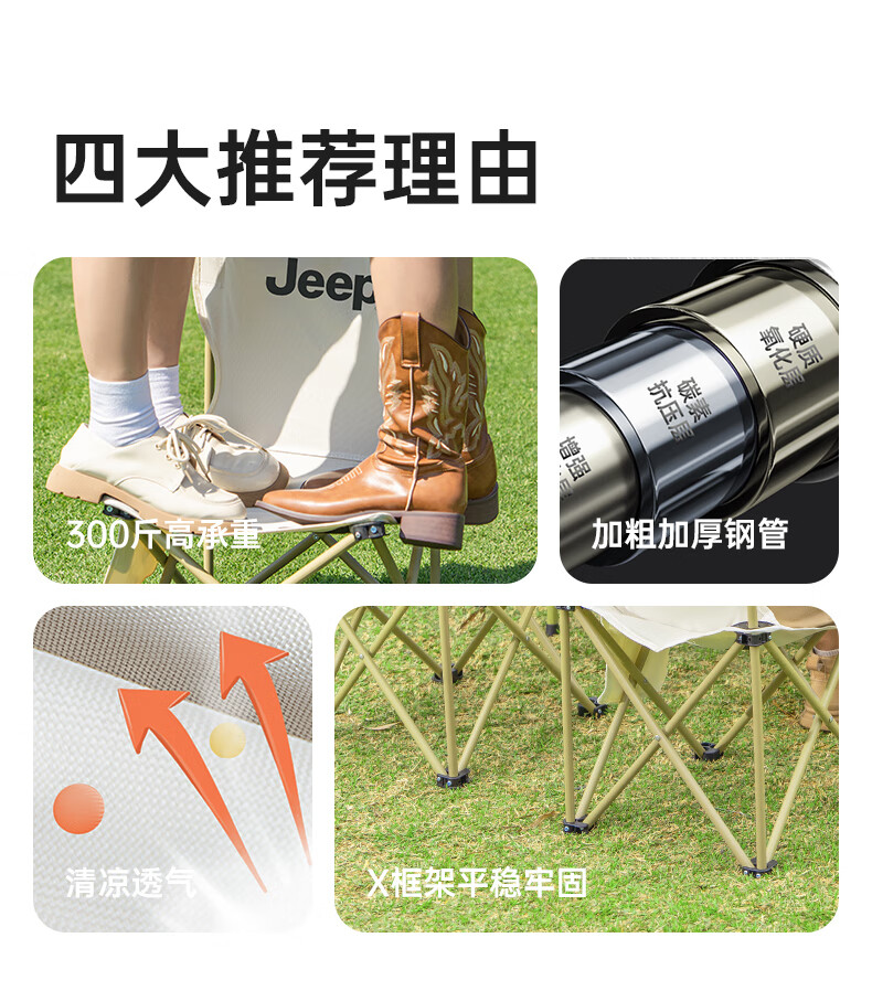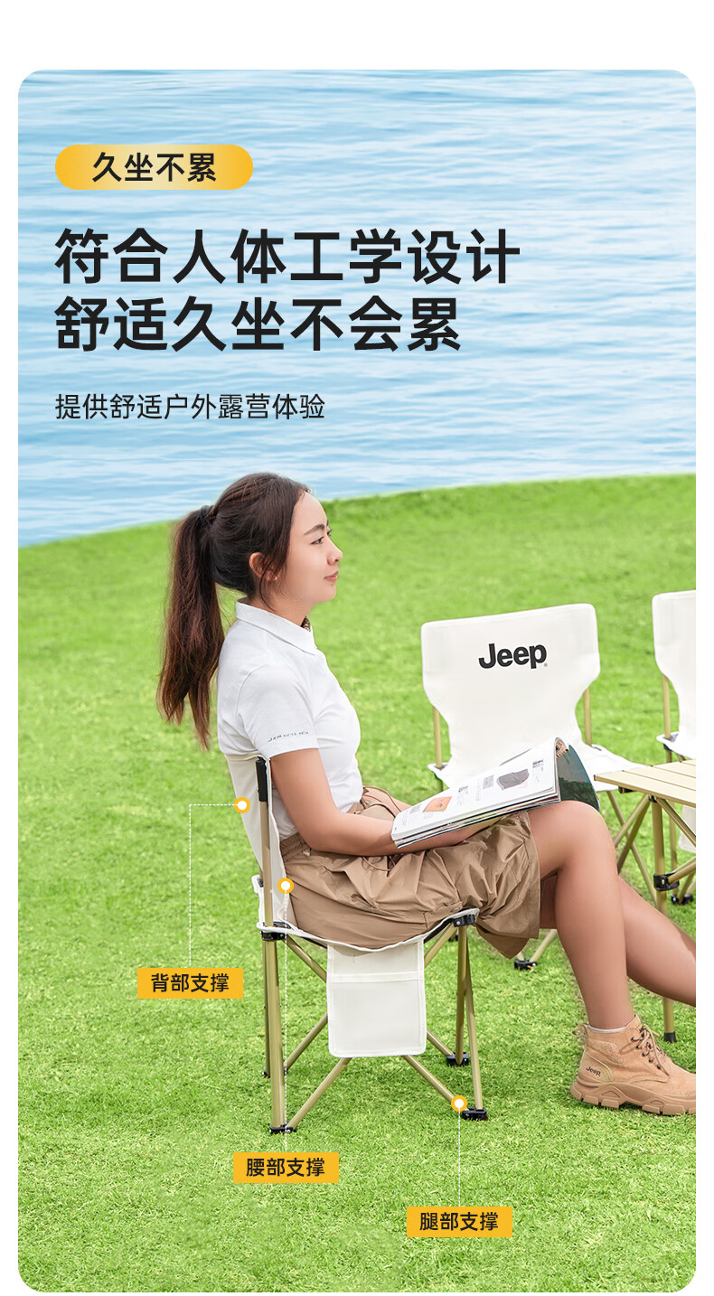 分别买了jeep的一整套装备,款式挺好看的,坐着也很舒服的,椅子舒适高支撑好,总体也挺不错的!尺寸大小也可以,承重性强,很实用的一款!