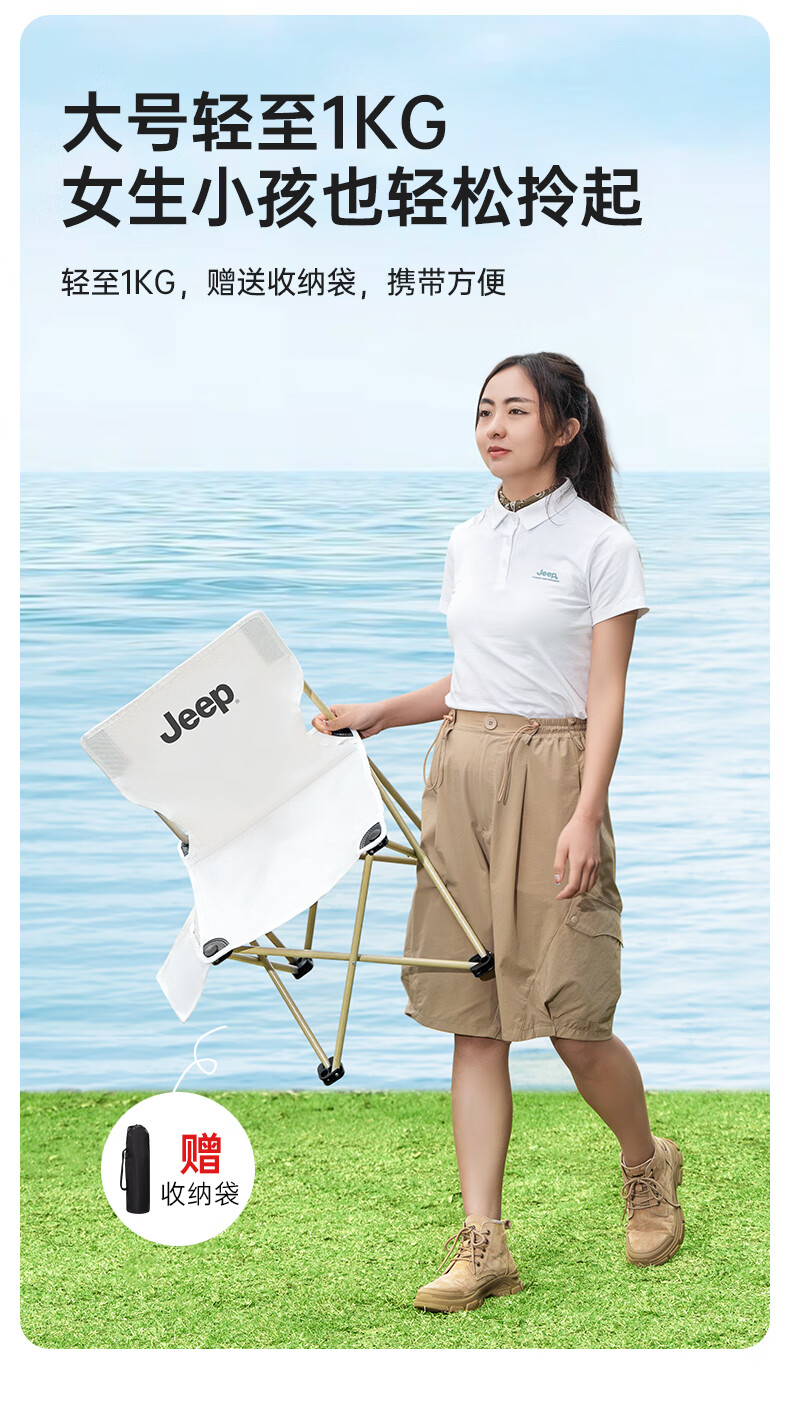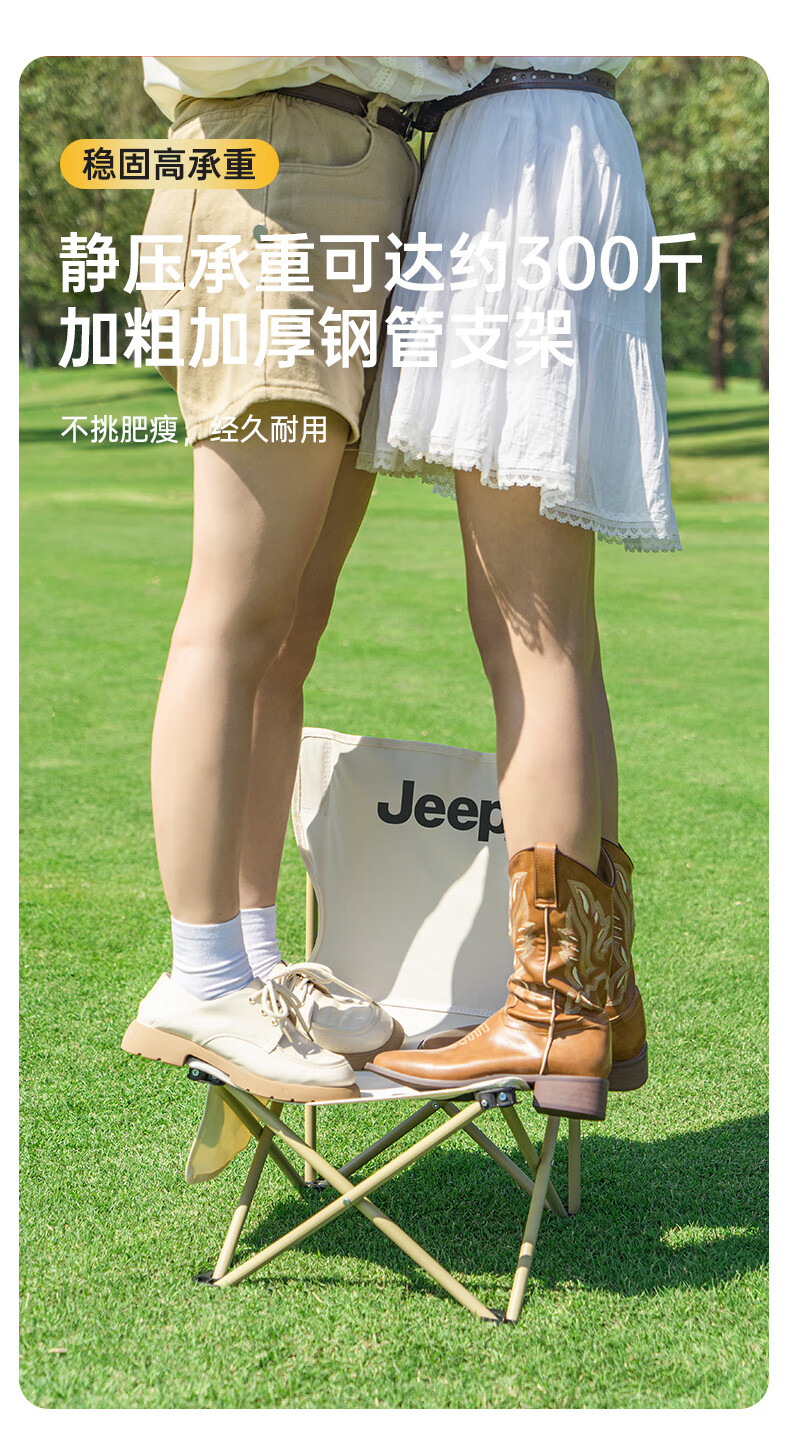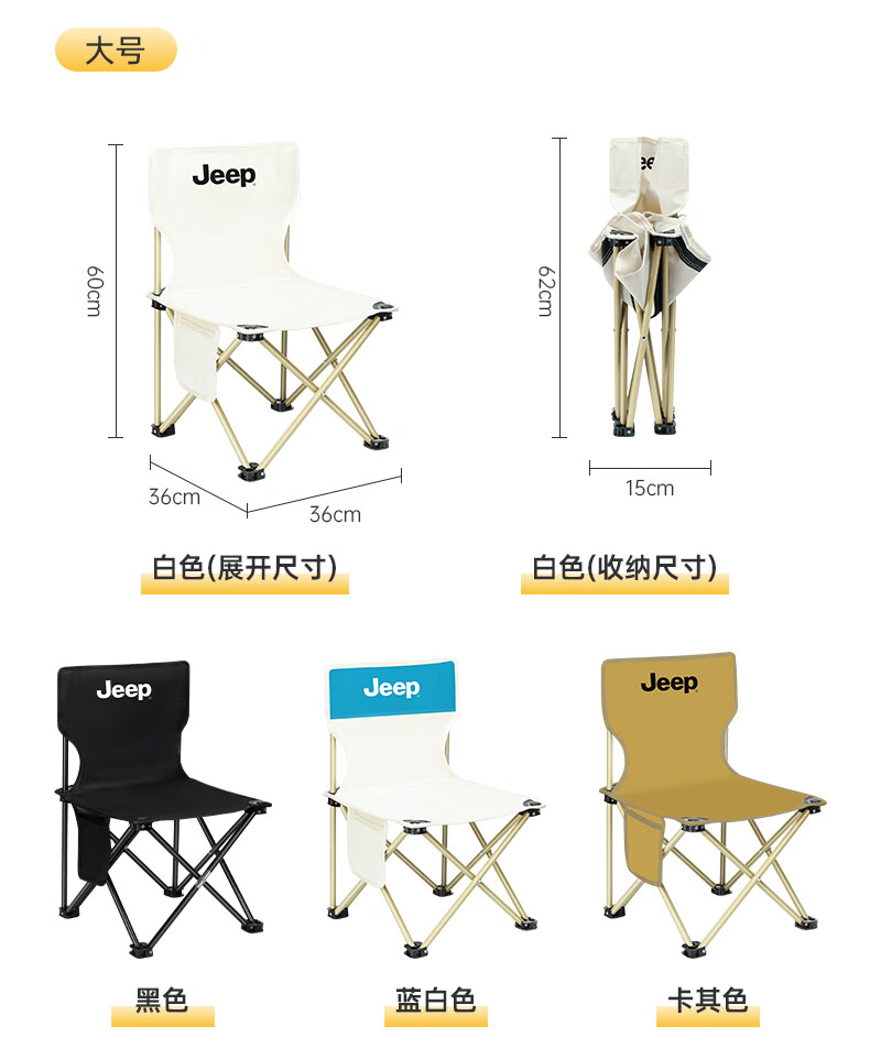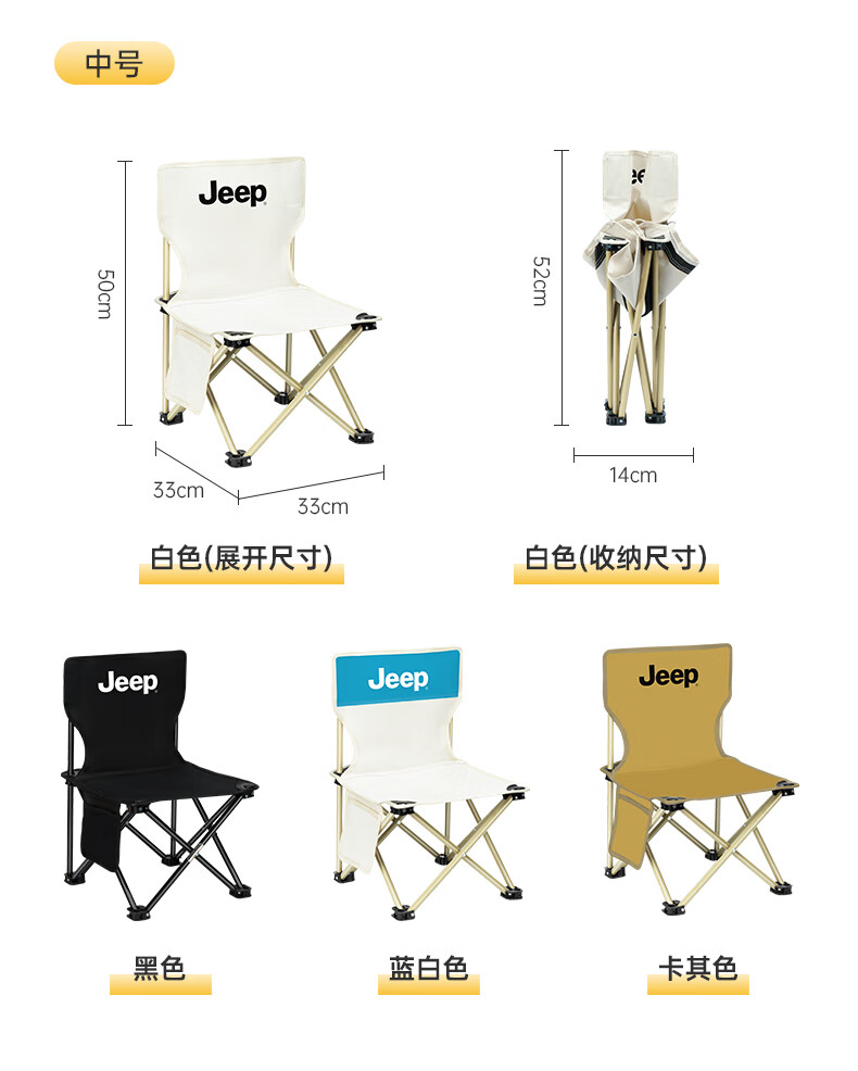 JEEP折叠椅凳露营椅子户外便携桌椅野餐野外野营钓鱼写生小马扎 白色中号