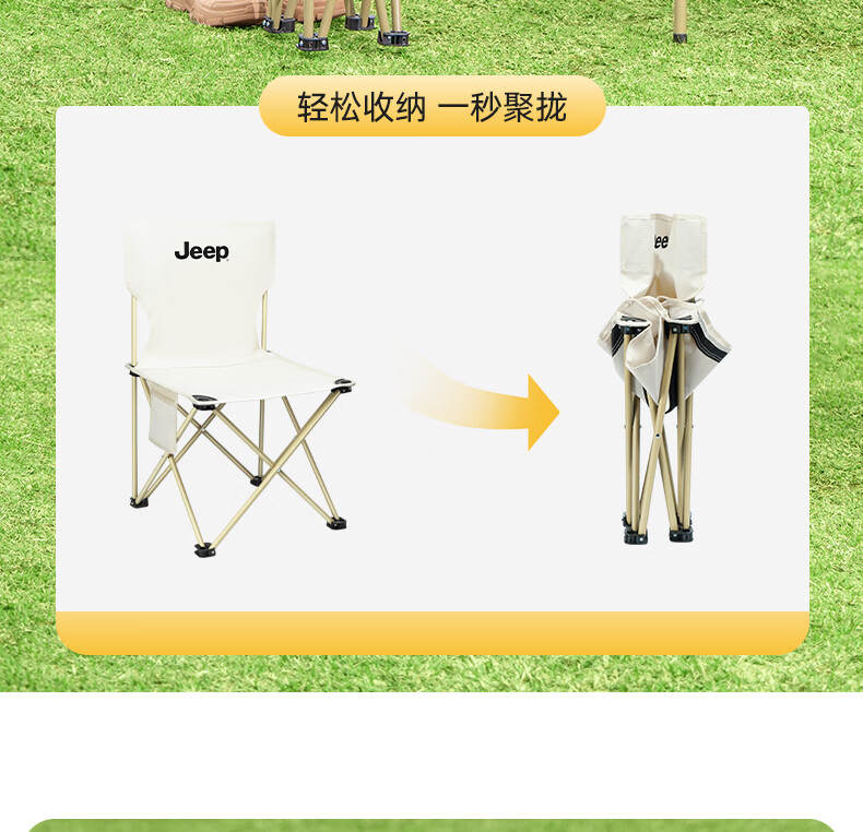 我买的是一款吉普的折叠凳,这个凳子很方便。嗯,如果拿到出去也可以嗯放到后备箱里面,不是放到嗯,对,放到马桶里面都能放,很方便,很实用