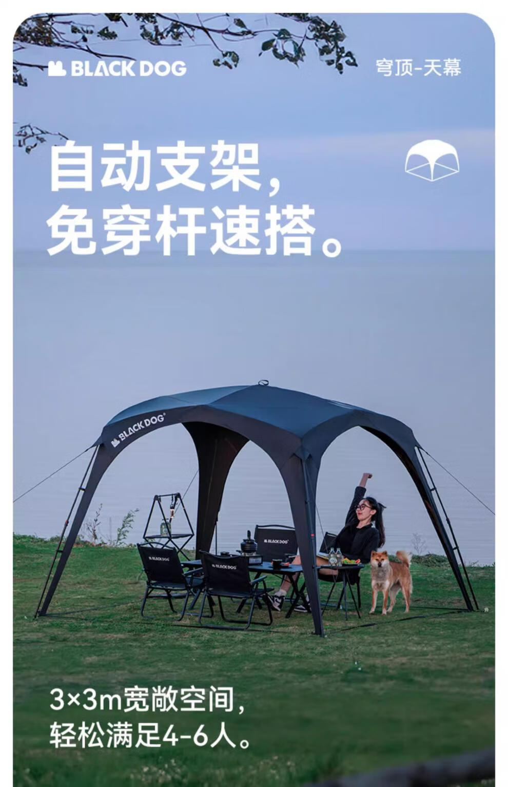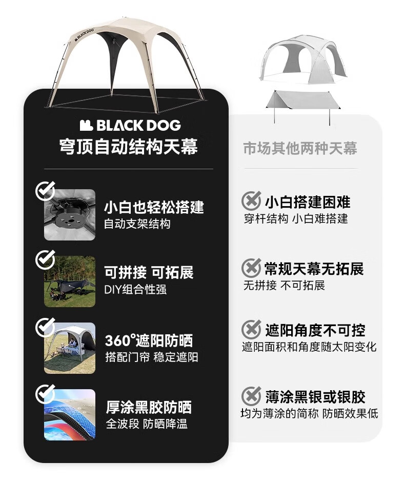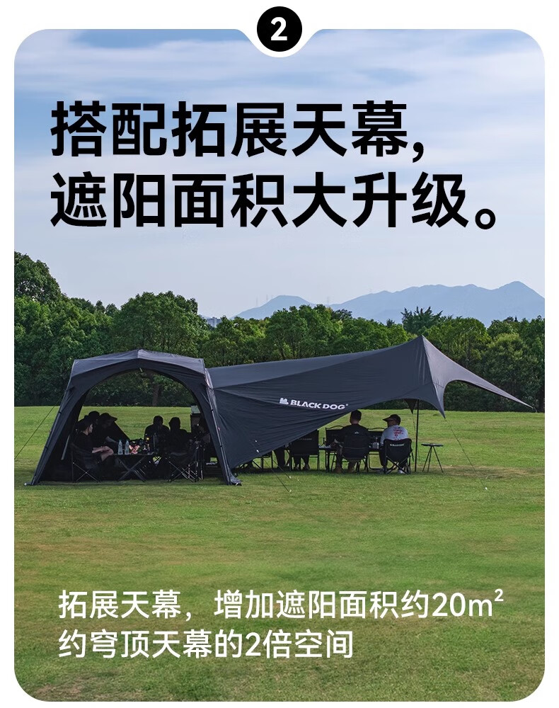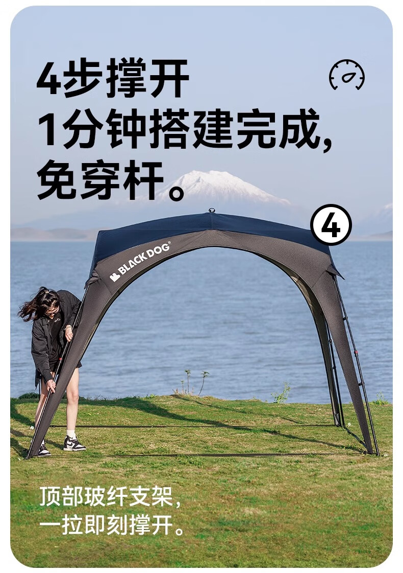 black dog黑狗自动穹顶天幕速开户外露营自立免搭建黑胶遮阳棚 主体|穹顶|夜幕黑