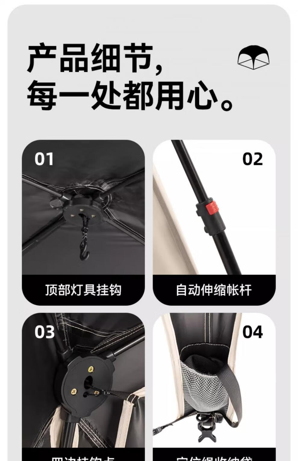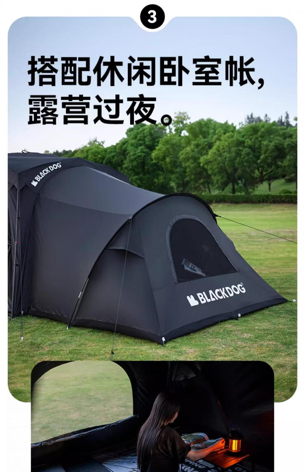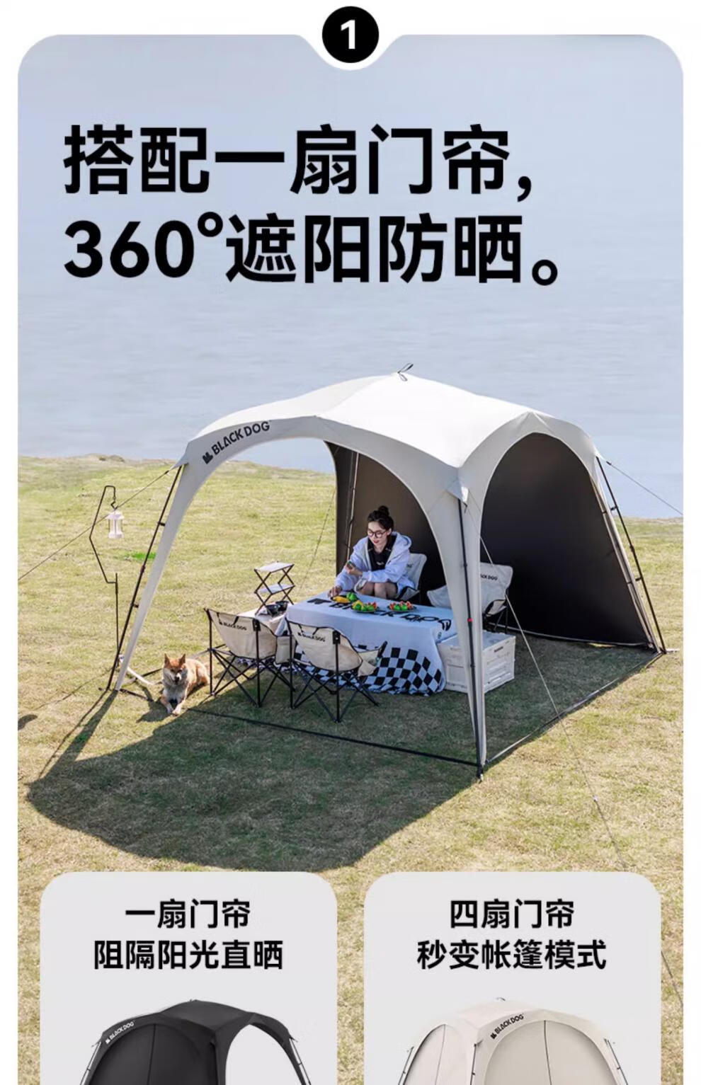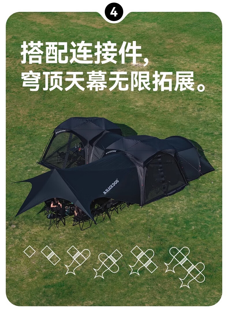 black dog黑狗自动穹顶天幕速开户外露营自立免搭建黑胶遮阳棚 主体|穹顶|夜幕黑