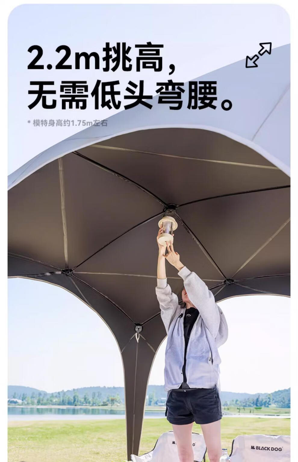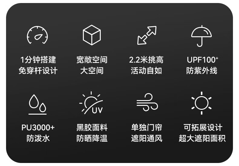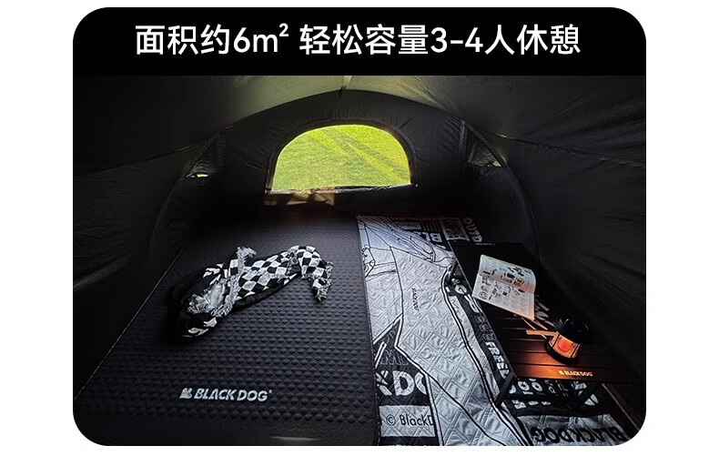 智宙格炫维穹顶天幕速开自立BLACKDOG黑狗自动户外露营免搭建黑胶帐篷 黑胶穹顶天幕门帘夜幕黑