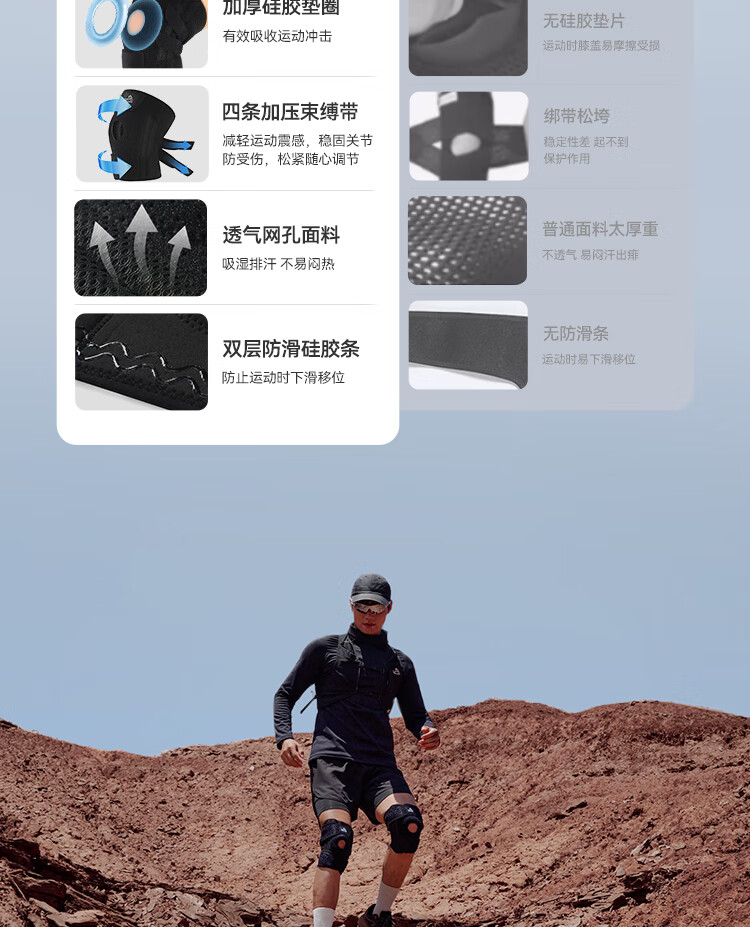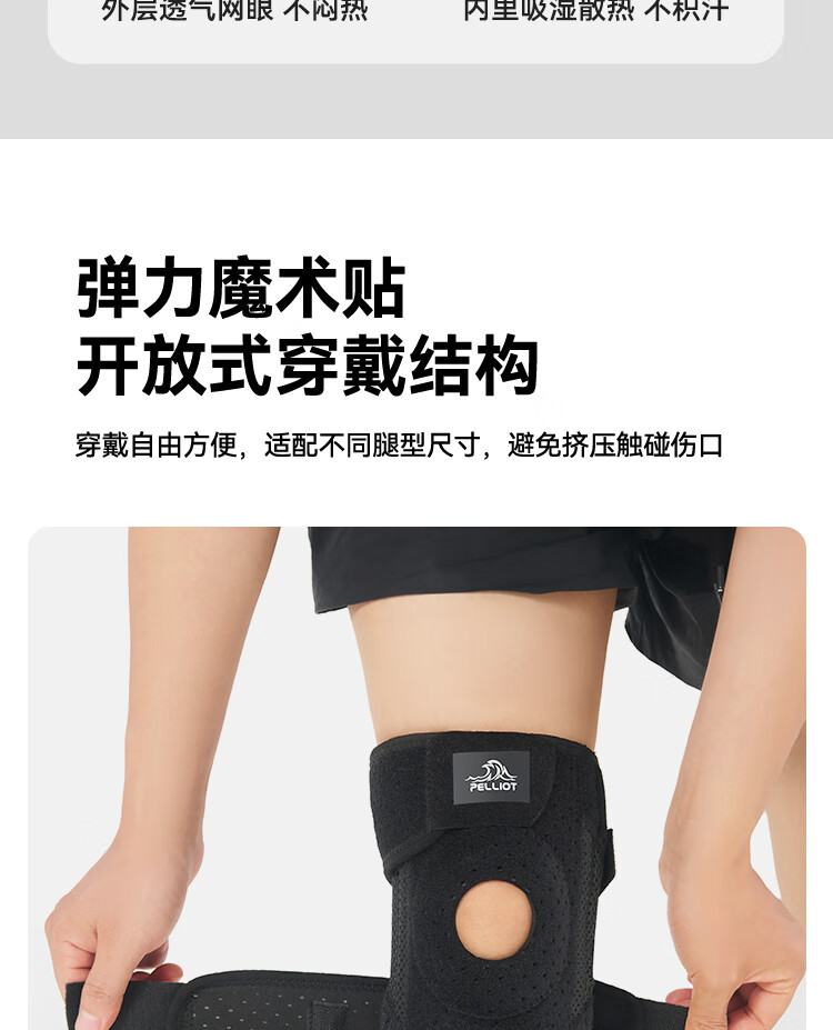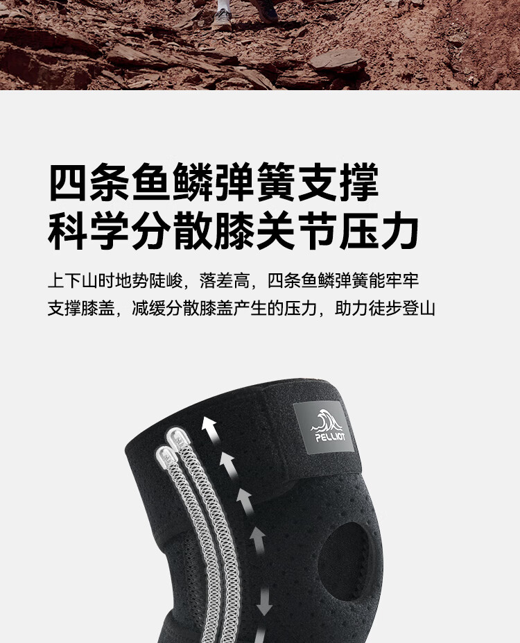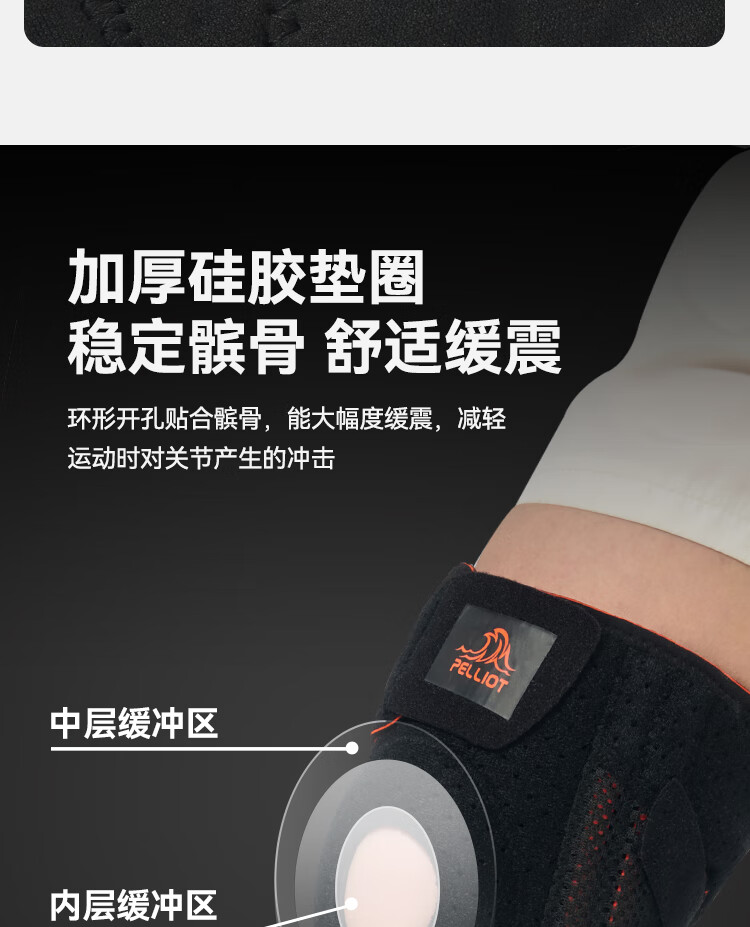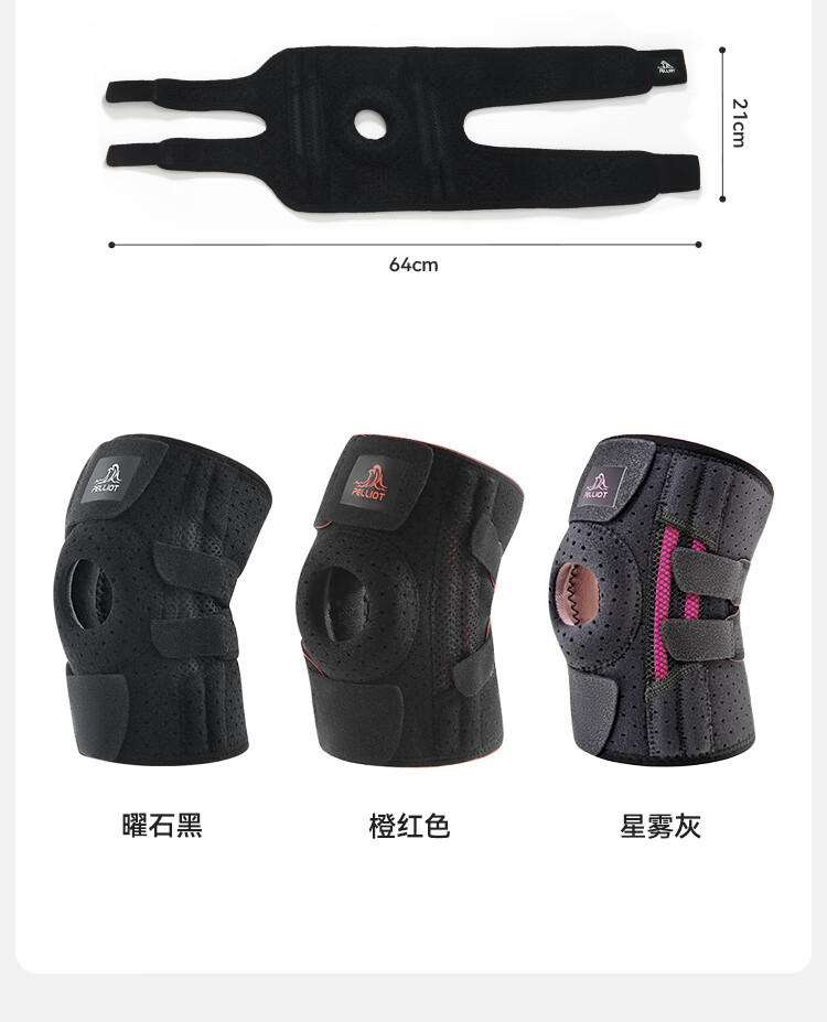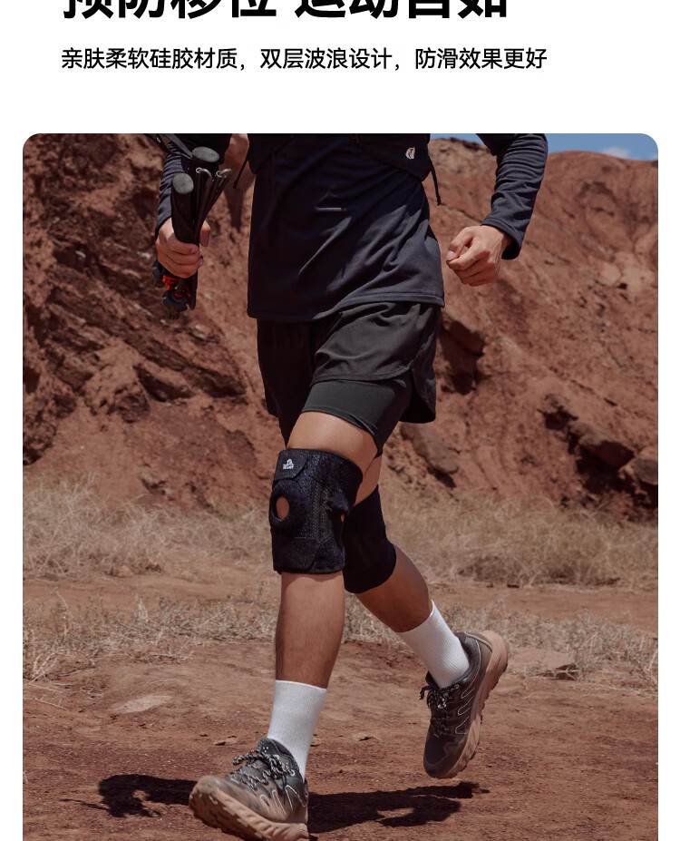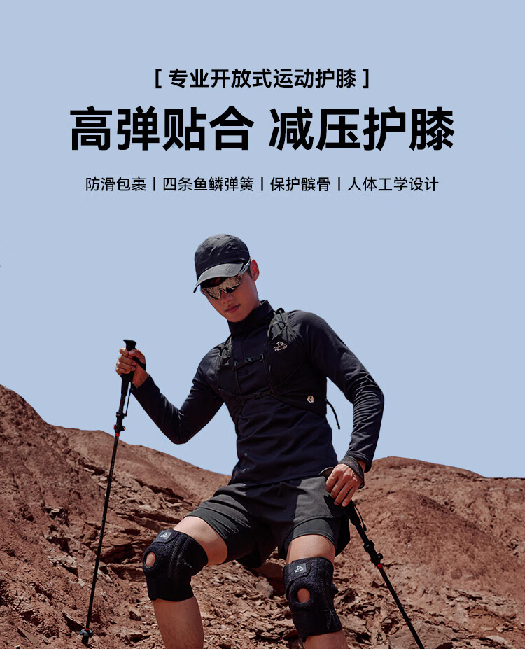 伯希和户外护膝男女徒步登山专业护具髌骨保护膝盖爬山运动装备 【高弹贴合 稳走髌骨】曜石黑 2只装
