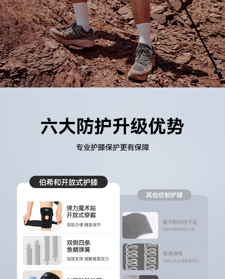 伯希和(Pelliot)户外护膝登山徒步男女半月板运动膝盖关节装备16403943灰色双只装