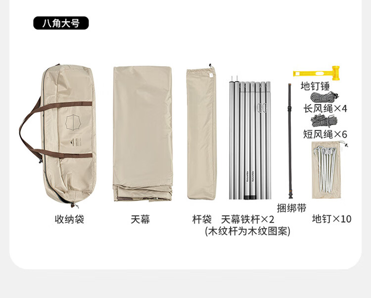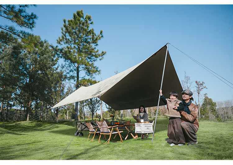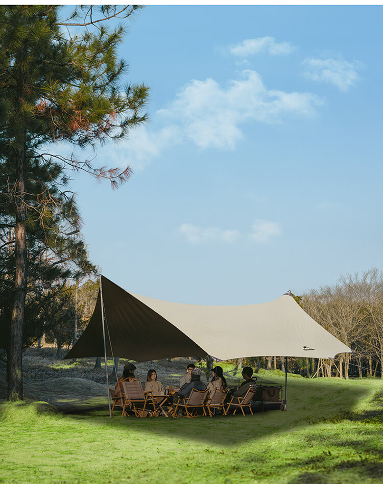 挪客Naturehike云霄天幕钛黑胶防晒户外露营野营天幕大小号遮阳棚 13.5㎡ 8-10人-四边形-木纹铝杆