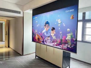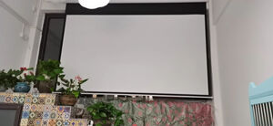 电动幕布可接入米家,小爱同学语音控制,联动极米4K投影仪,效果很不错