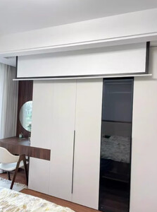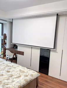 幕布平整度非常高,看上去非常的美观大气,隐藏起来也非常美观,跟整体装修风格很搭,投影清晰效果好