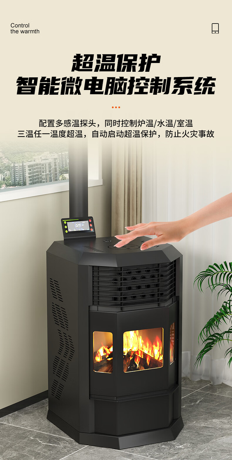 冠时代生物质颗粒取暖炉农村家用室内客厅全自动智能烧颗粒节能炉子 智享260型 供暖30平-260平