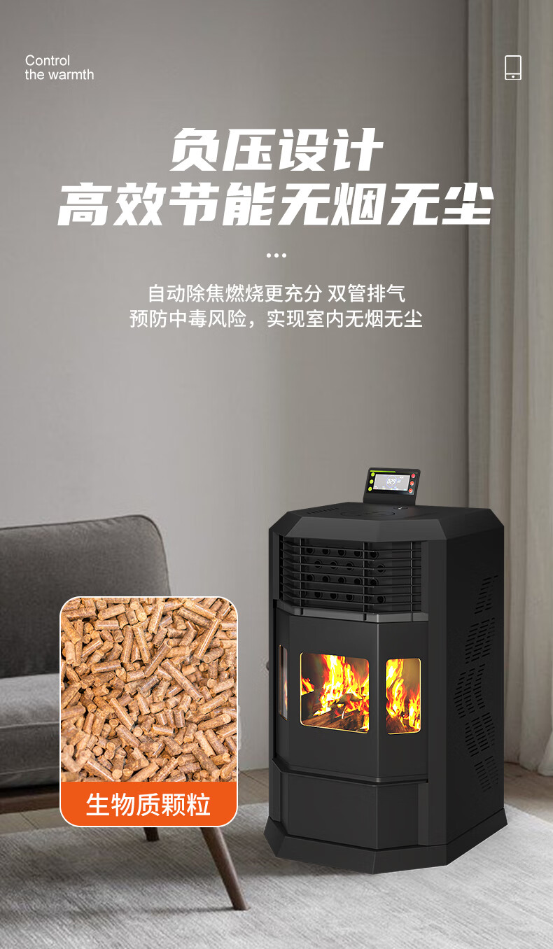 效果杠杠的,基本没有噪音,几分钟屋里就暖和了。店家服务态度非常好,送的颗粒也非常耐烧。