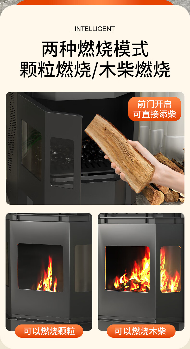 非常好,氛围感拉满,燃烧充分,能把热量基本上都留在室内,具备颗粒炉的省事省力的优点,具备柴火壁炉的观火氛围感,散热风扇能把热能吹出去,太喜欢了