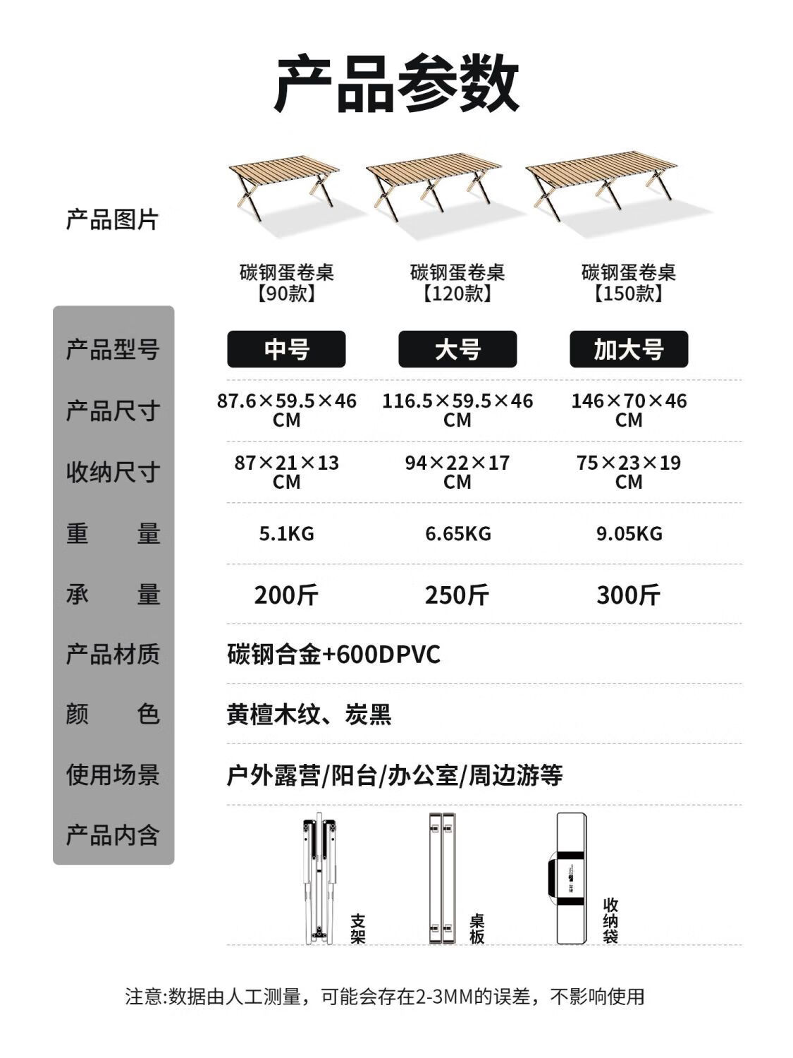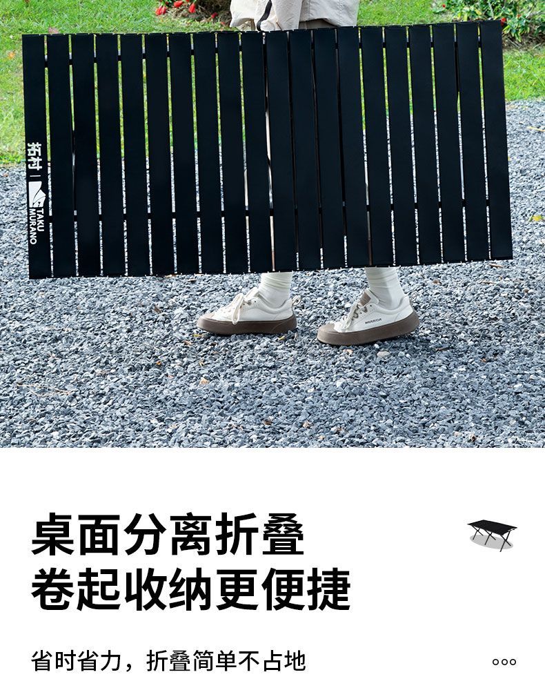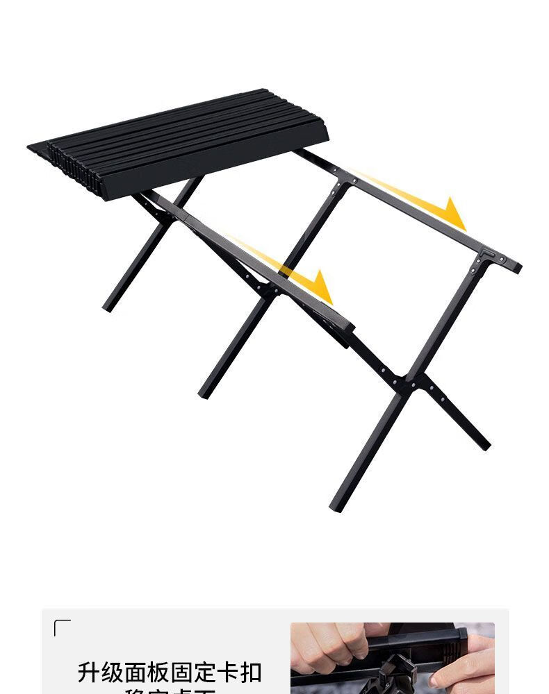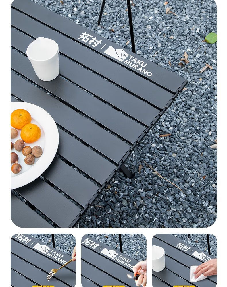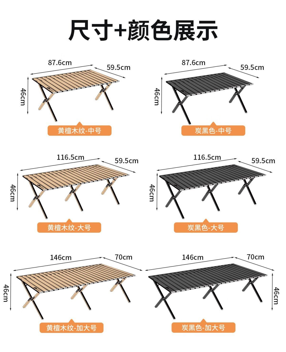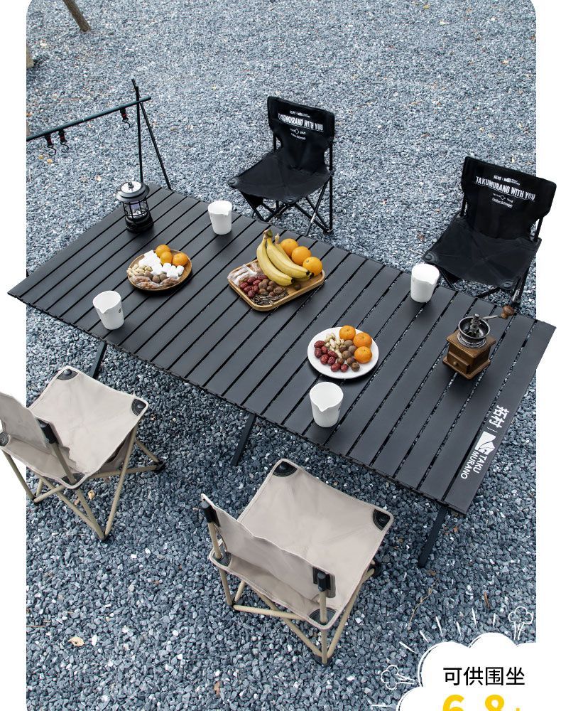 拓村户外露营折叠桌椅套装蛋卷桌克米特椅组合便携式野营野炊全套装备 炭黑色【特大号146cmX70cm】