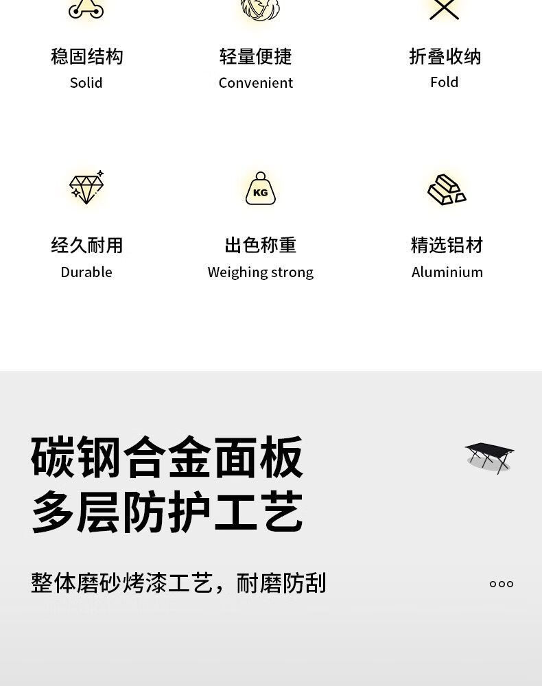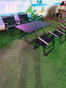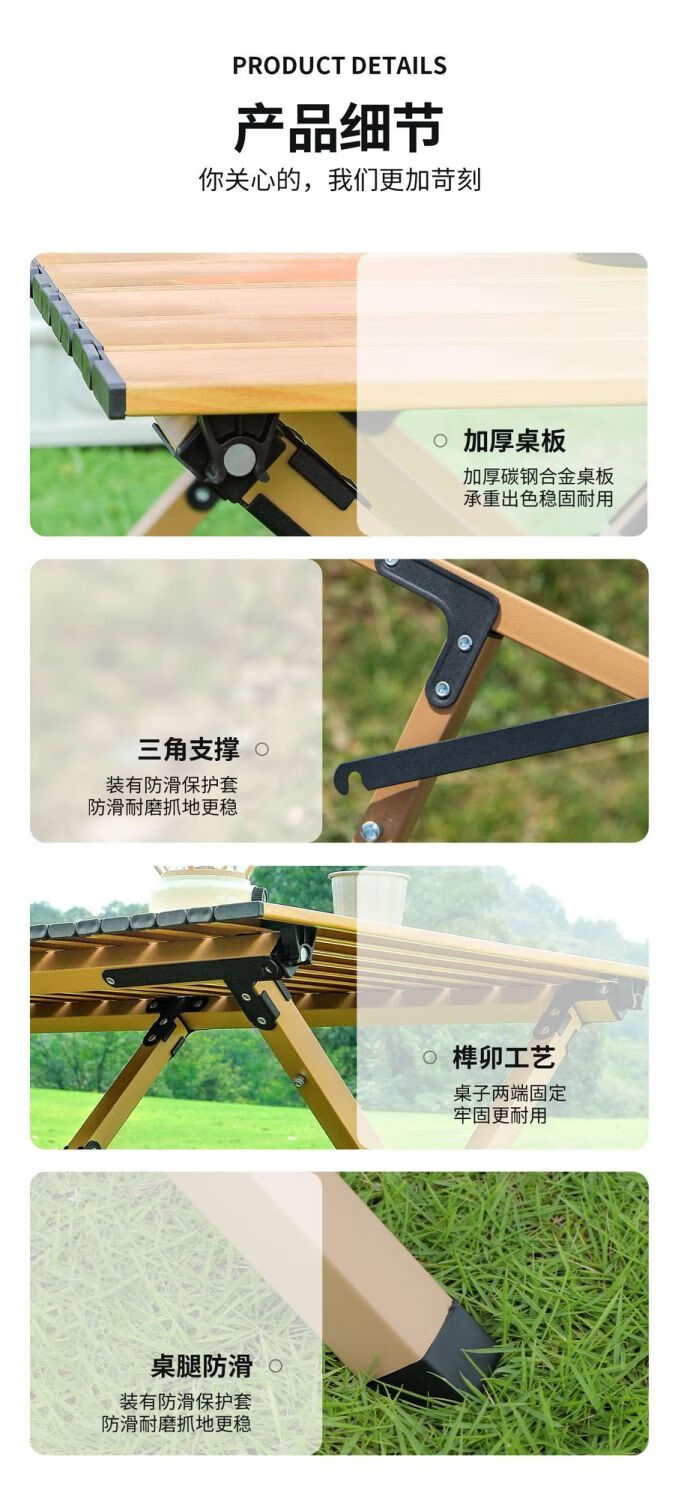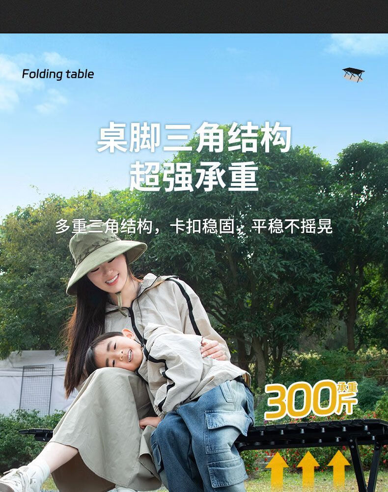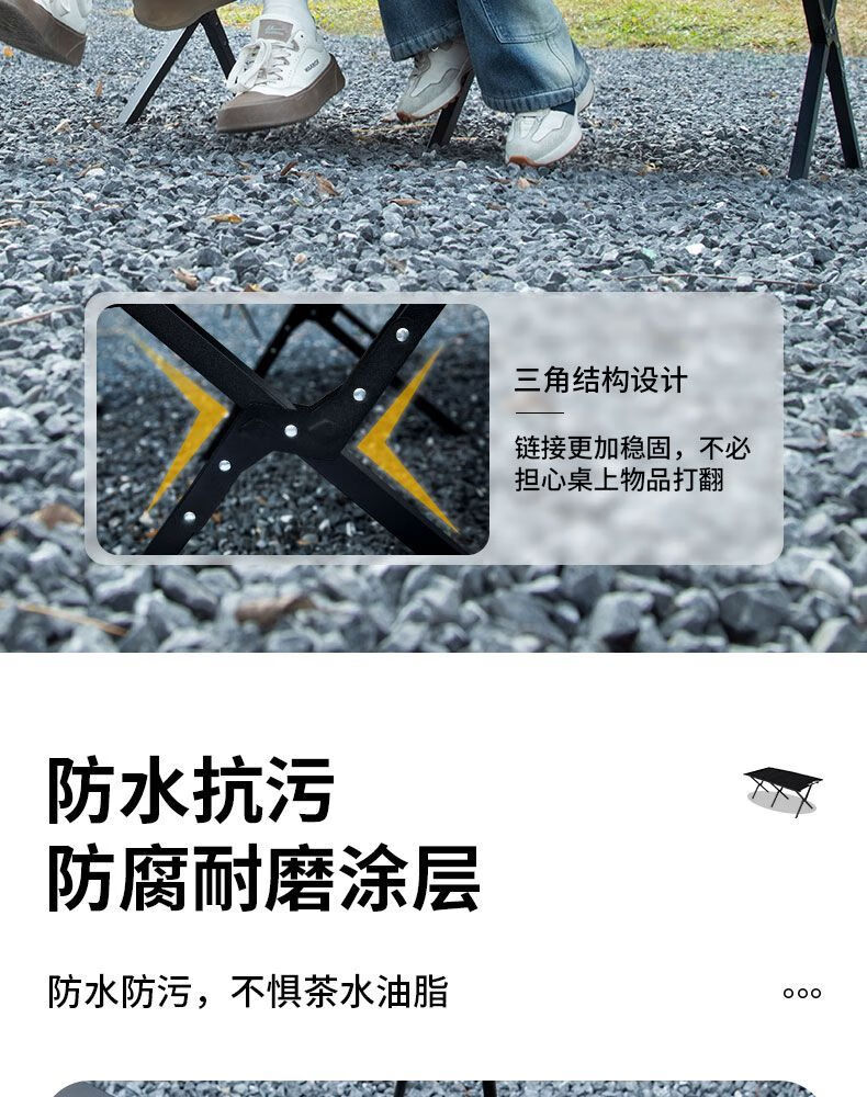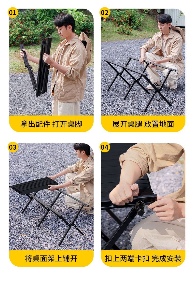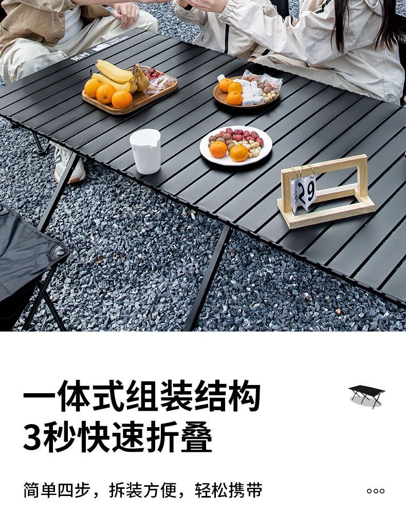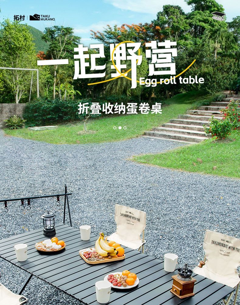 拓村户外露营折叠桌椅套装蛋卷桌克米特椅组合便携式野营野炊全套装备 炭黑色【特大号146cmX70cm】