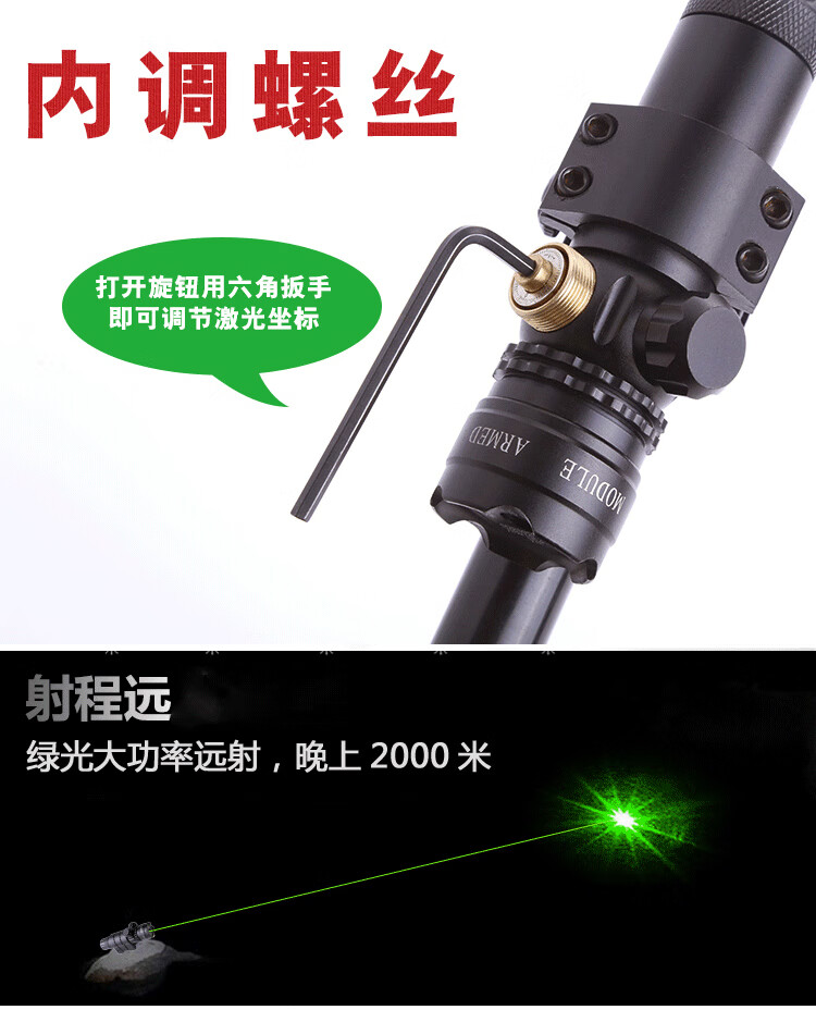 蚊子王抗震红外线激光瞄准器上下左右可调绿外线瞄准器红绿激光瞄准镜 绿激光超低管夹二电一充